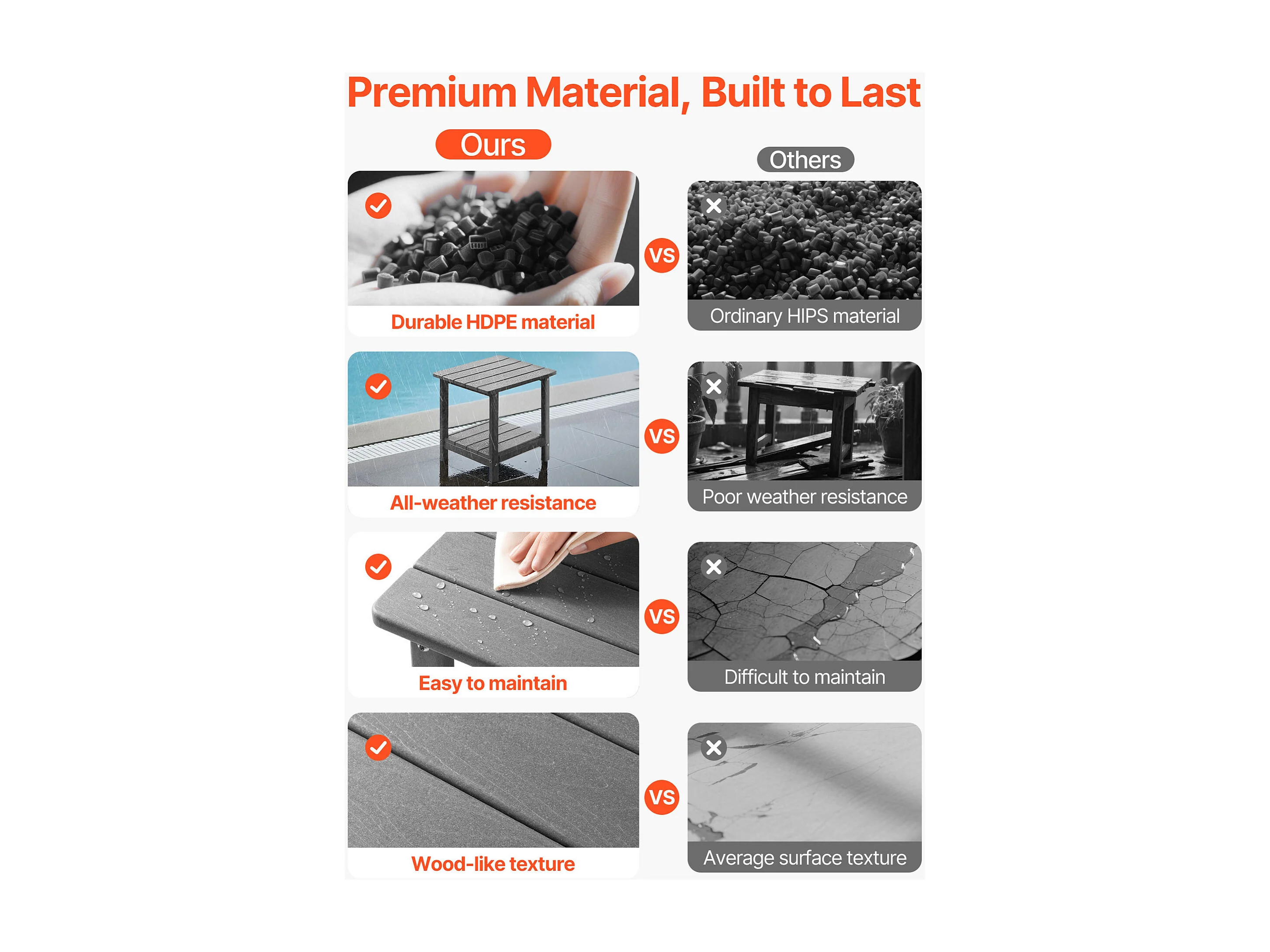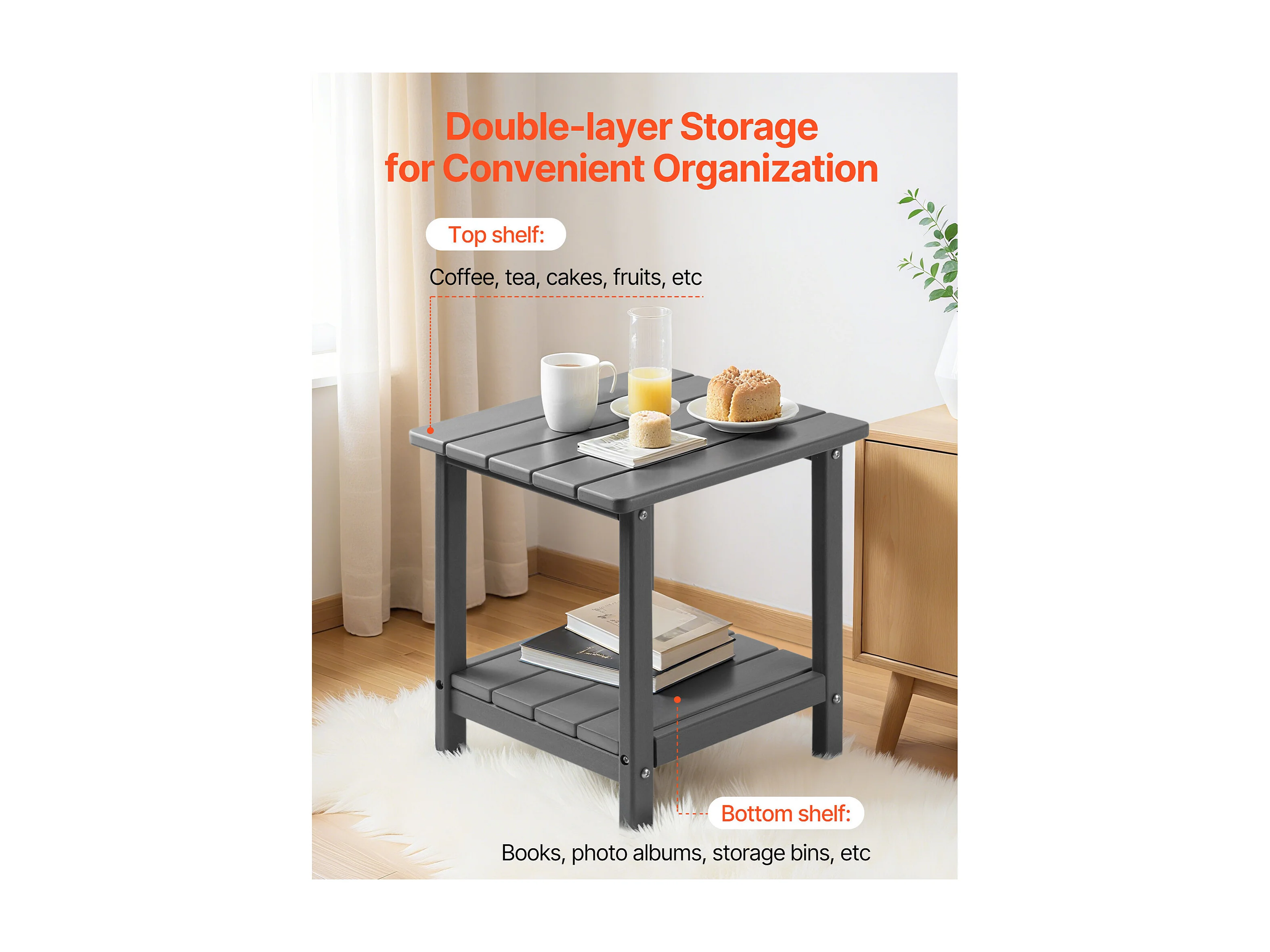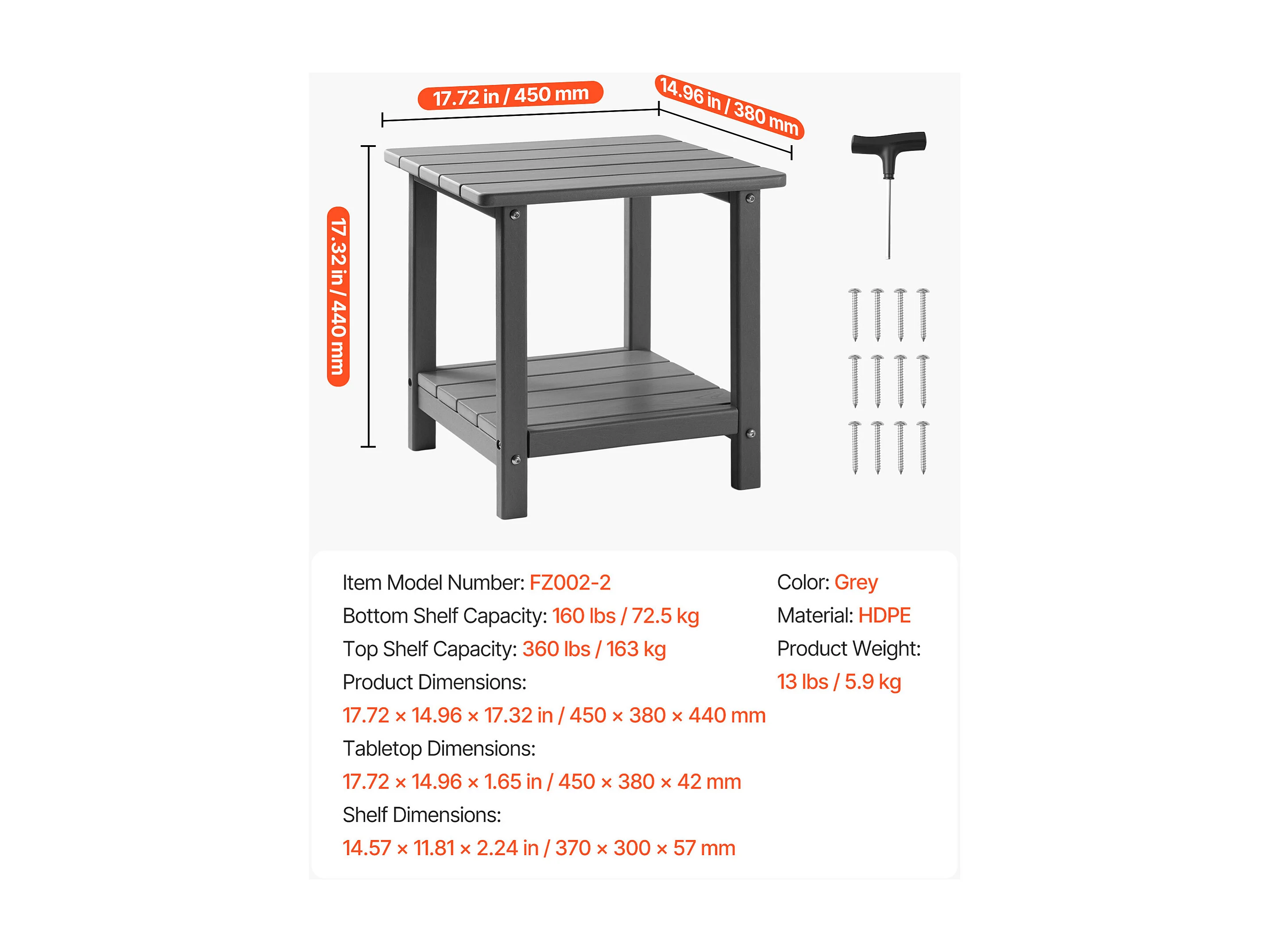 Table d’Appoint SucceBuy Extérieur Jardin, 2 Niveaux, 45 x 38 x 44 cm, en PEHD, Entretien Facile, Résiste aux Intempéries, pour Terrasse, Bord de Piscine, Gris