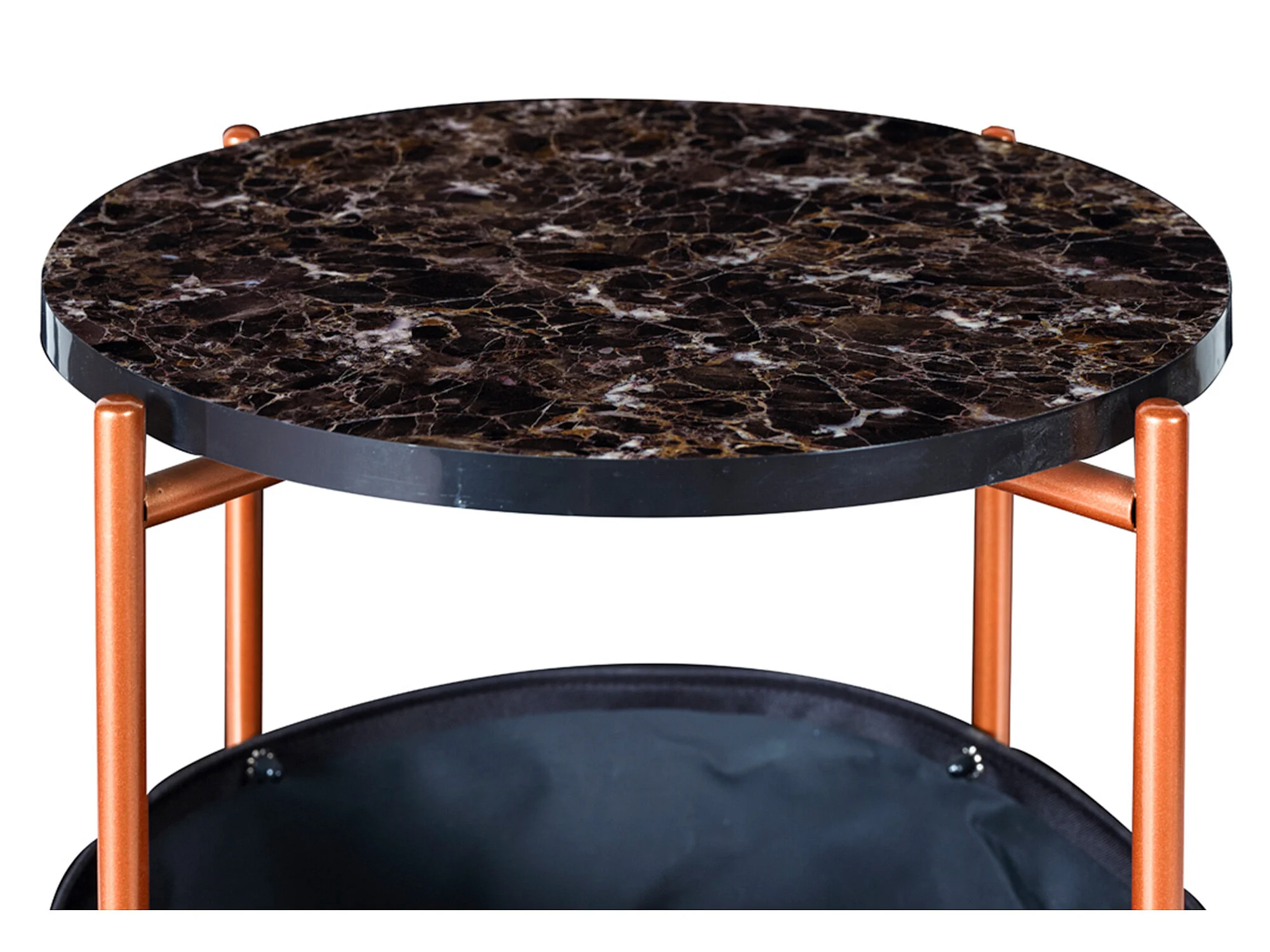 Table d'appoint Suonenjoki avec panier de rangement 59 x 47 cm marbre noir / bronze / noir [en.casa]