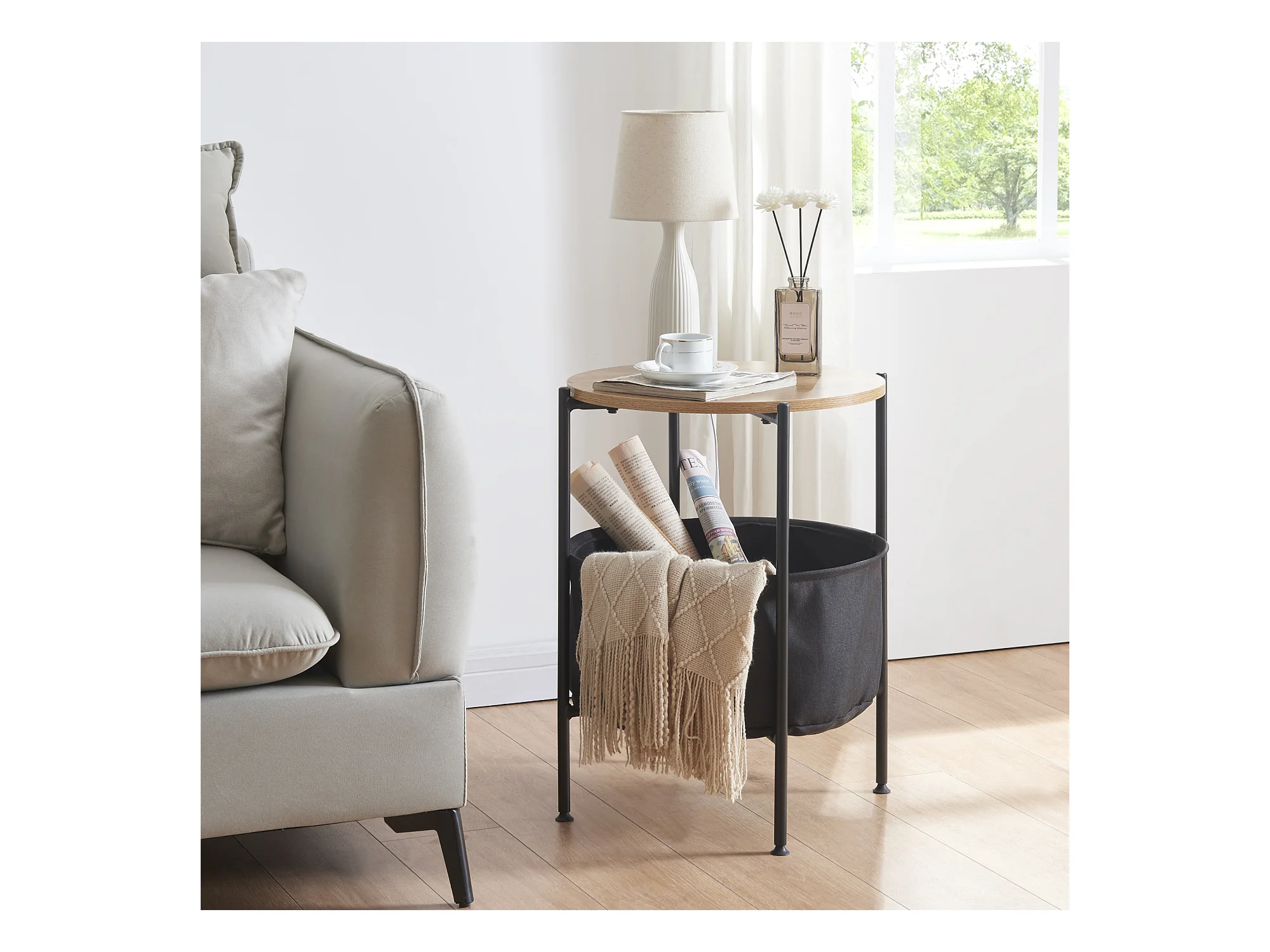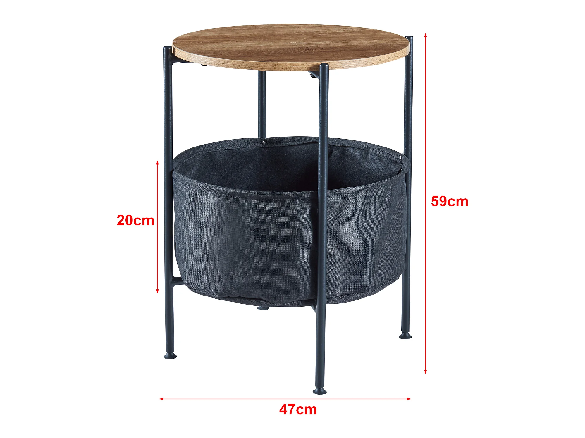Table d'appoint Suonenjoki avec panier de rangement 59 x 47 cm noir / effet noyer / gris [en.casa]