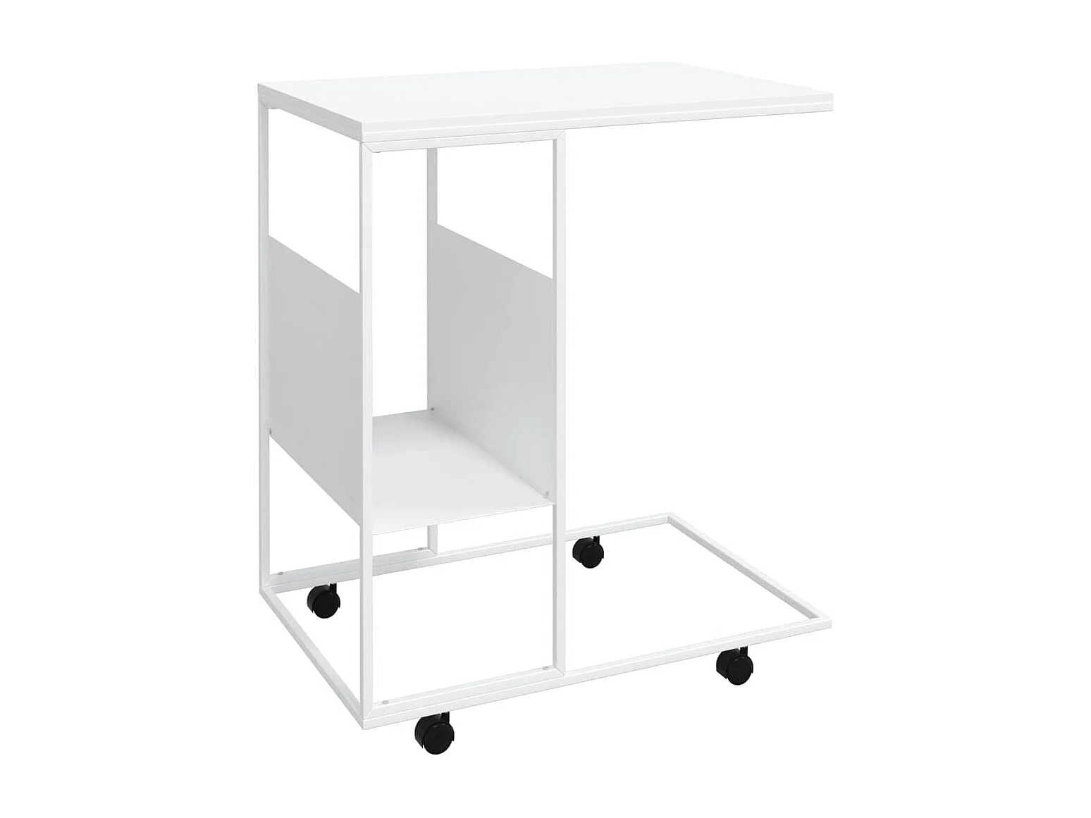Table d'appoint sur roulettes bois blanche 55 x 36 x 63.5 cm DEC031295