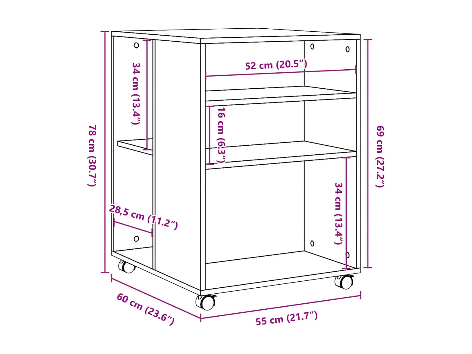 Table d'appoint sur roulettes bois marron 55 x 60 x 78 cm DEC024619