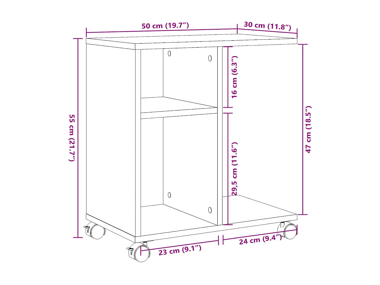 Table d'appoint sur roulettes bois marron 70 x 30 x 55 cm DEC032334