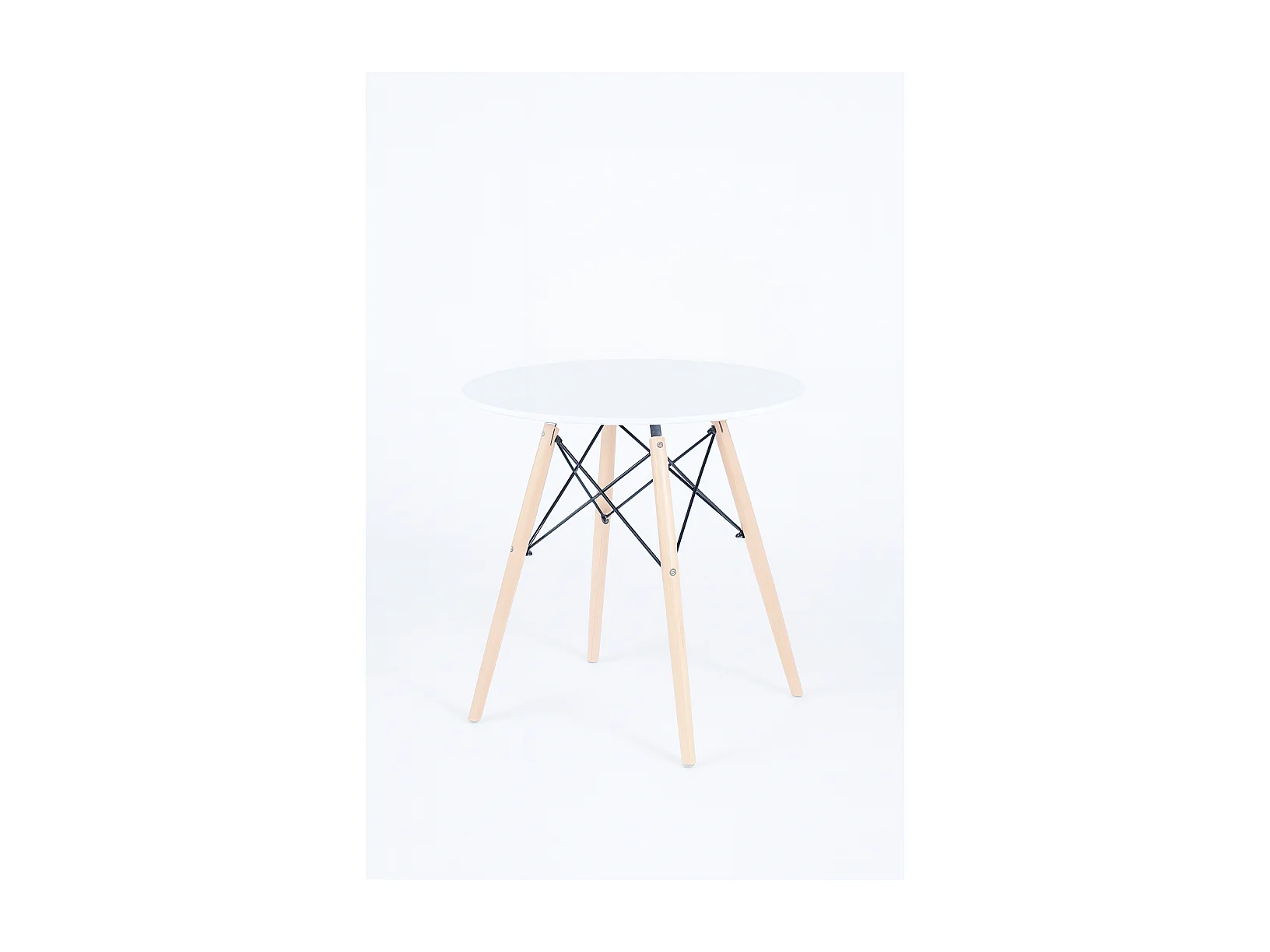 Table d'appoint table de salle à manger blanche avec pieds en bois naturel coloris Blanc - Diamètre 80 x Hauteur 75 cm