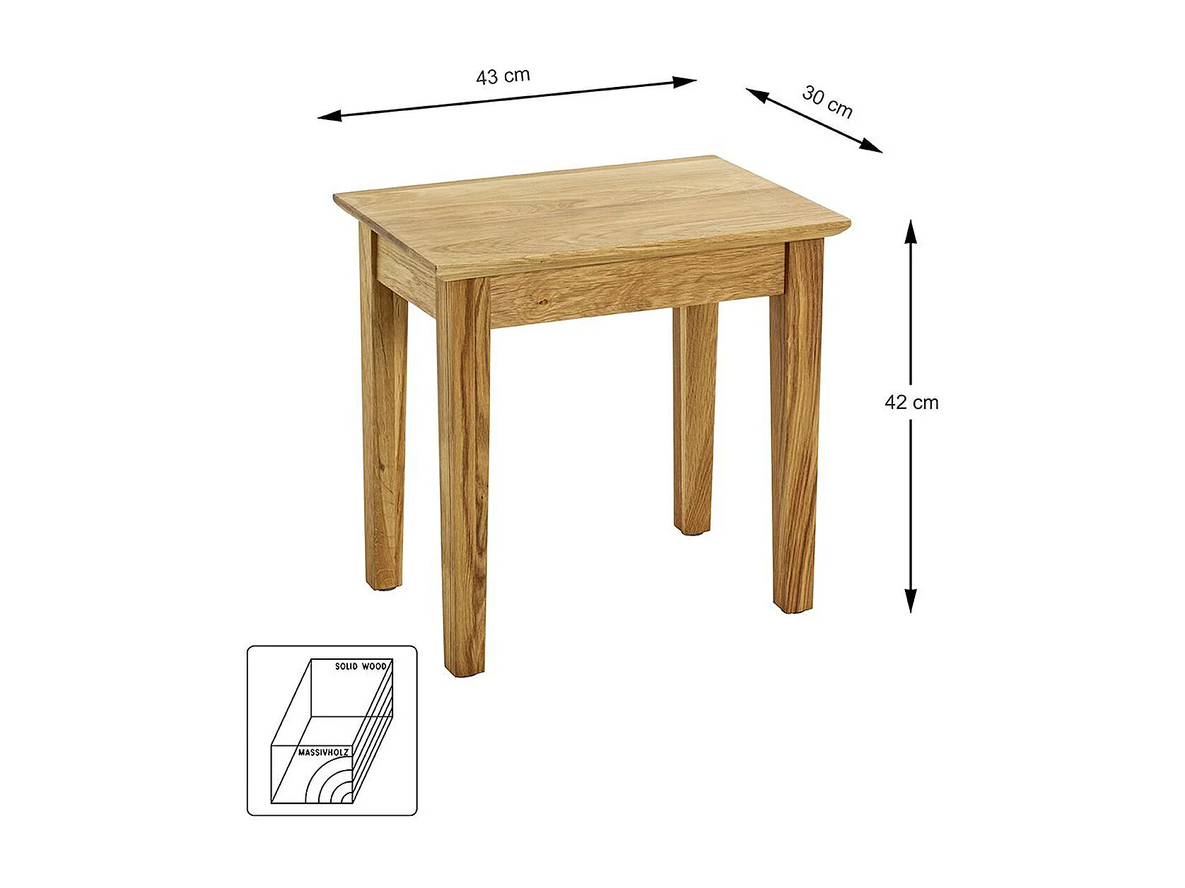 Table d'appoint, table de salon en bois massif coloris chêne -longueur 43 x profondeur 30 x hauteur 42 cm