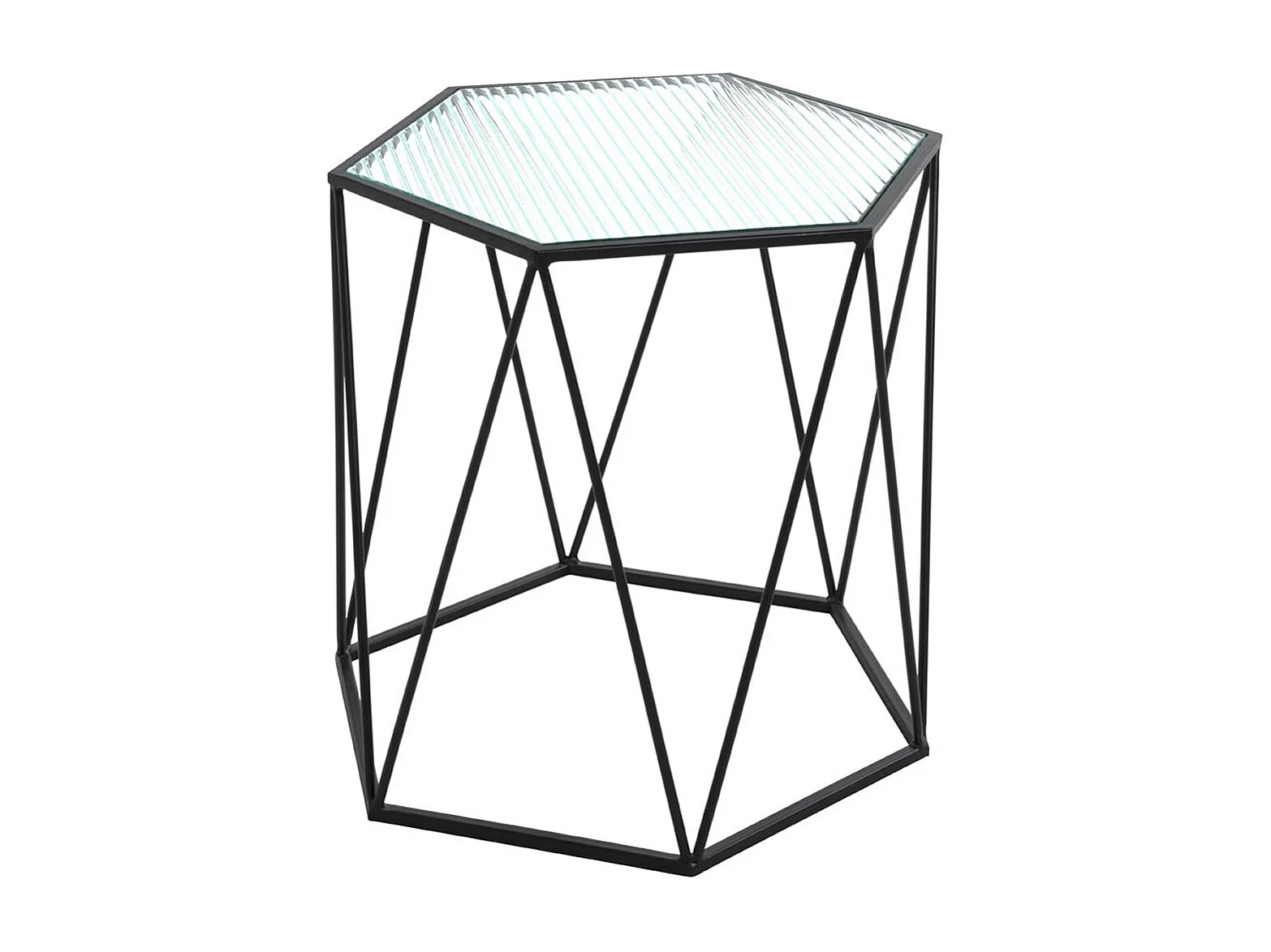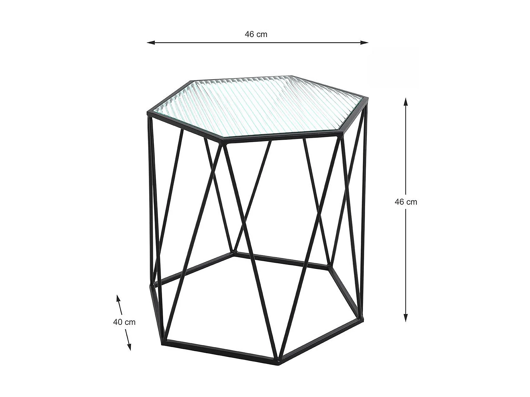 Table d'appoint, table de salon en verre trempé, pieds en métal noir -longueur 46 x profondeur 40 x hauteur 46 cm