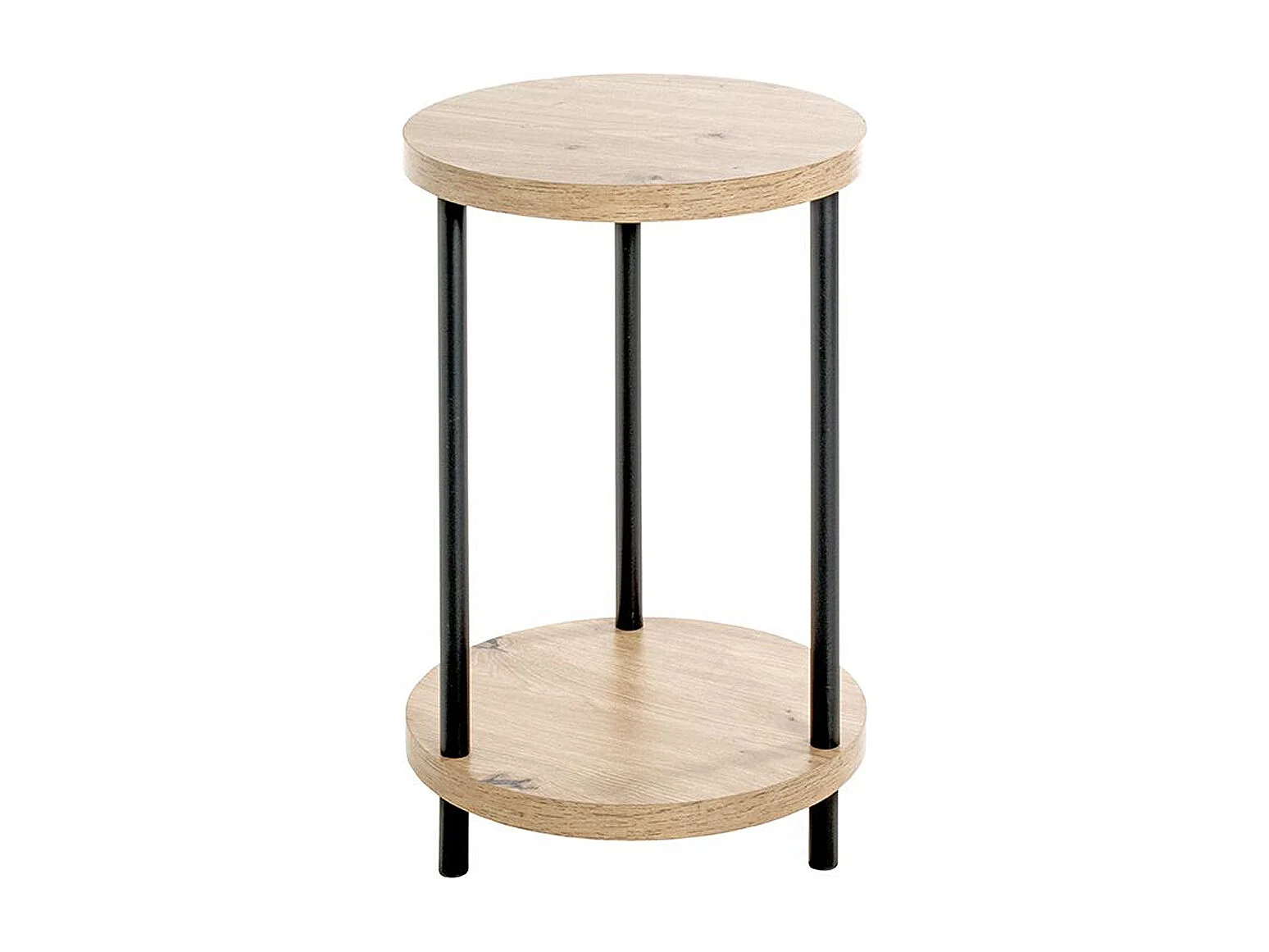 Table d'appoint, Table de salon en bois coloris chêne et métal noir - diamètre 40 x hauteur 45 cm