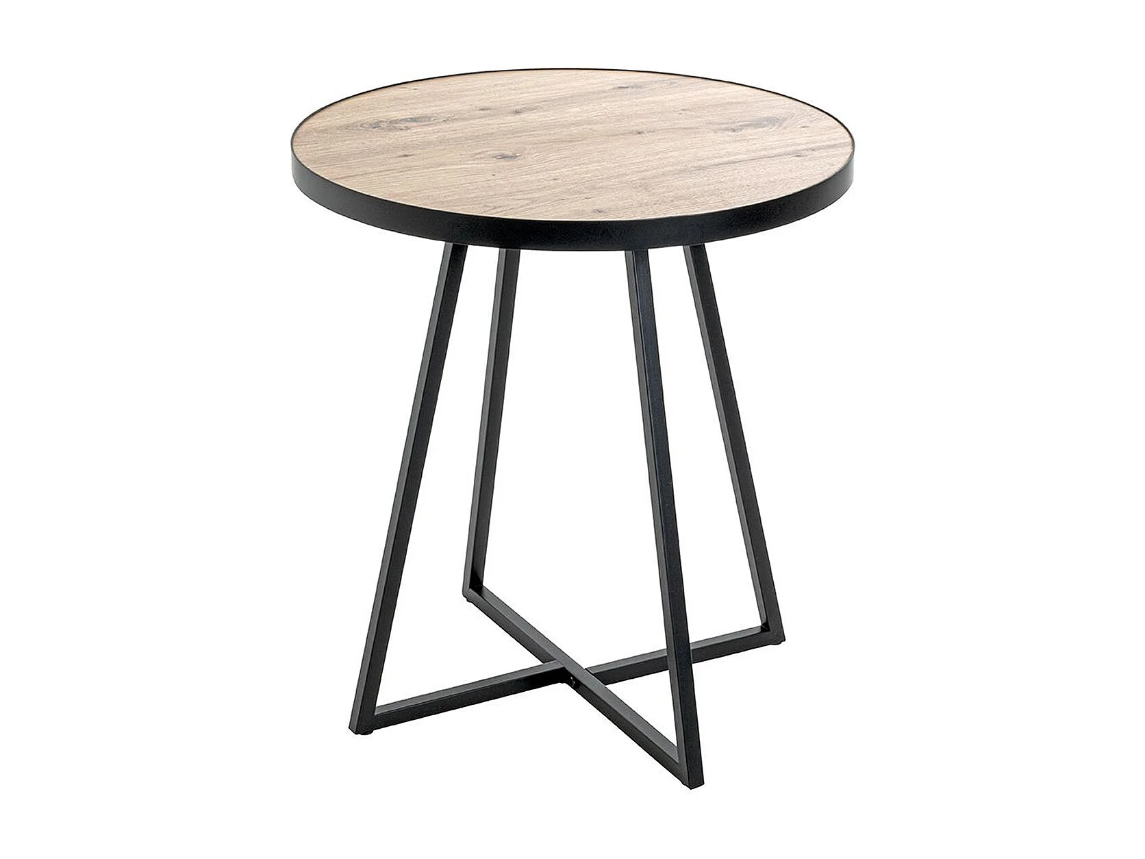 Table d'appoint, table de salon en bois coloris chêne et métal noir - diamètre 50 x hauteur 52 cm