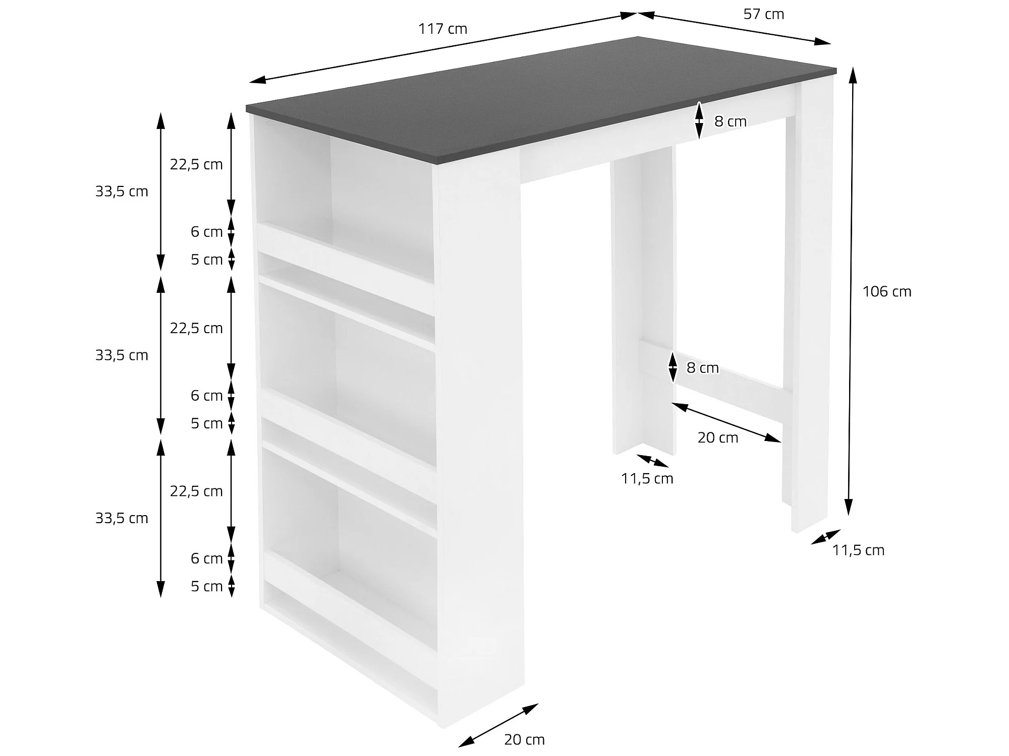 Table de bar blanc/anthracite 3 étagères rangement table de bistrot ML-DESIGN