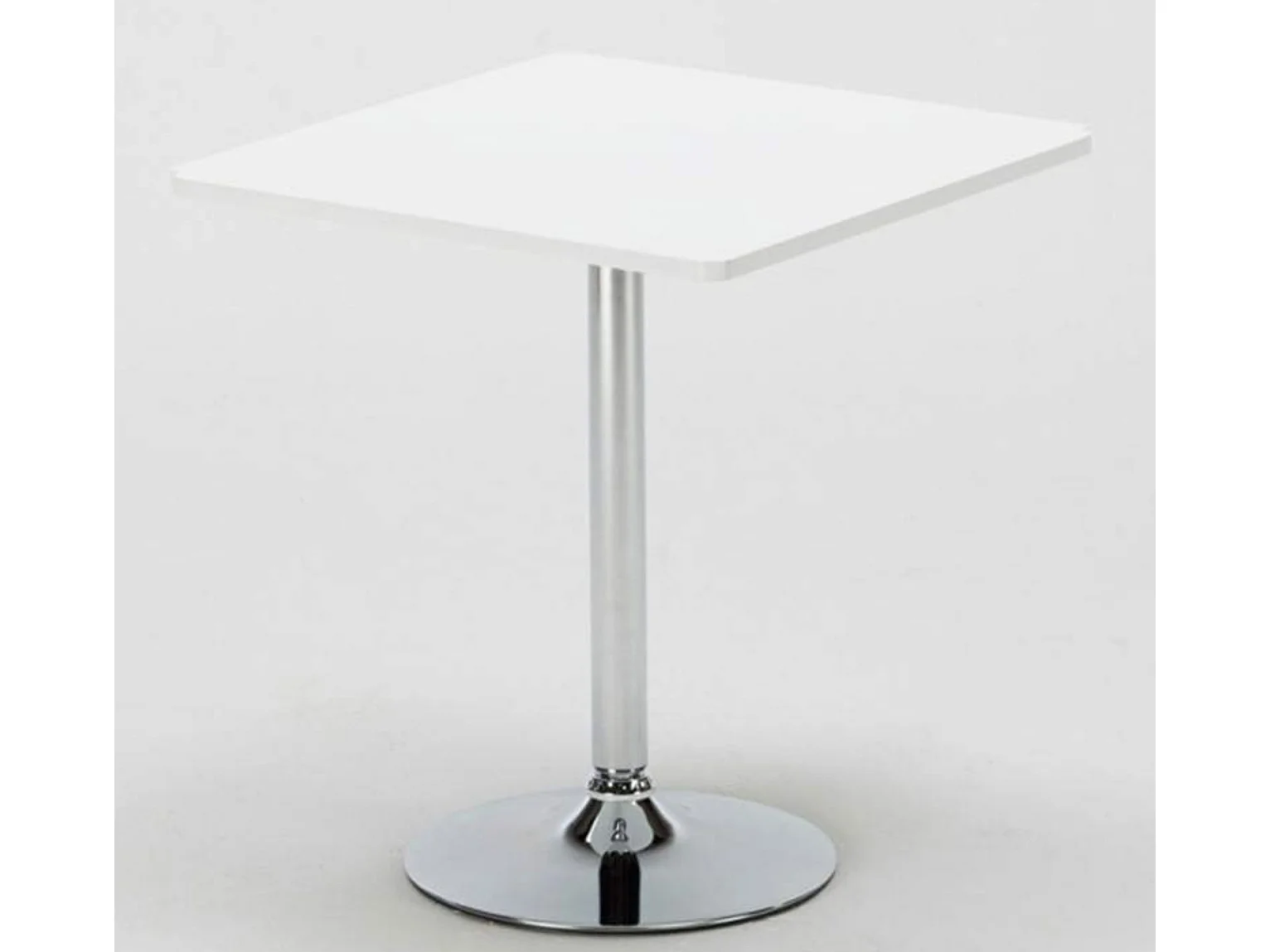 Table de bar carrée acier chrome et bois blanc Kindar L70xP70xH76.5