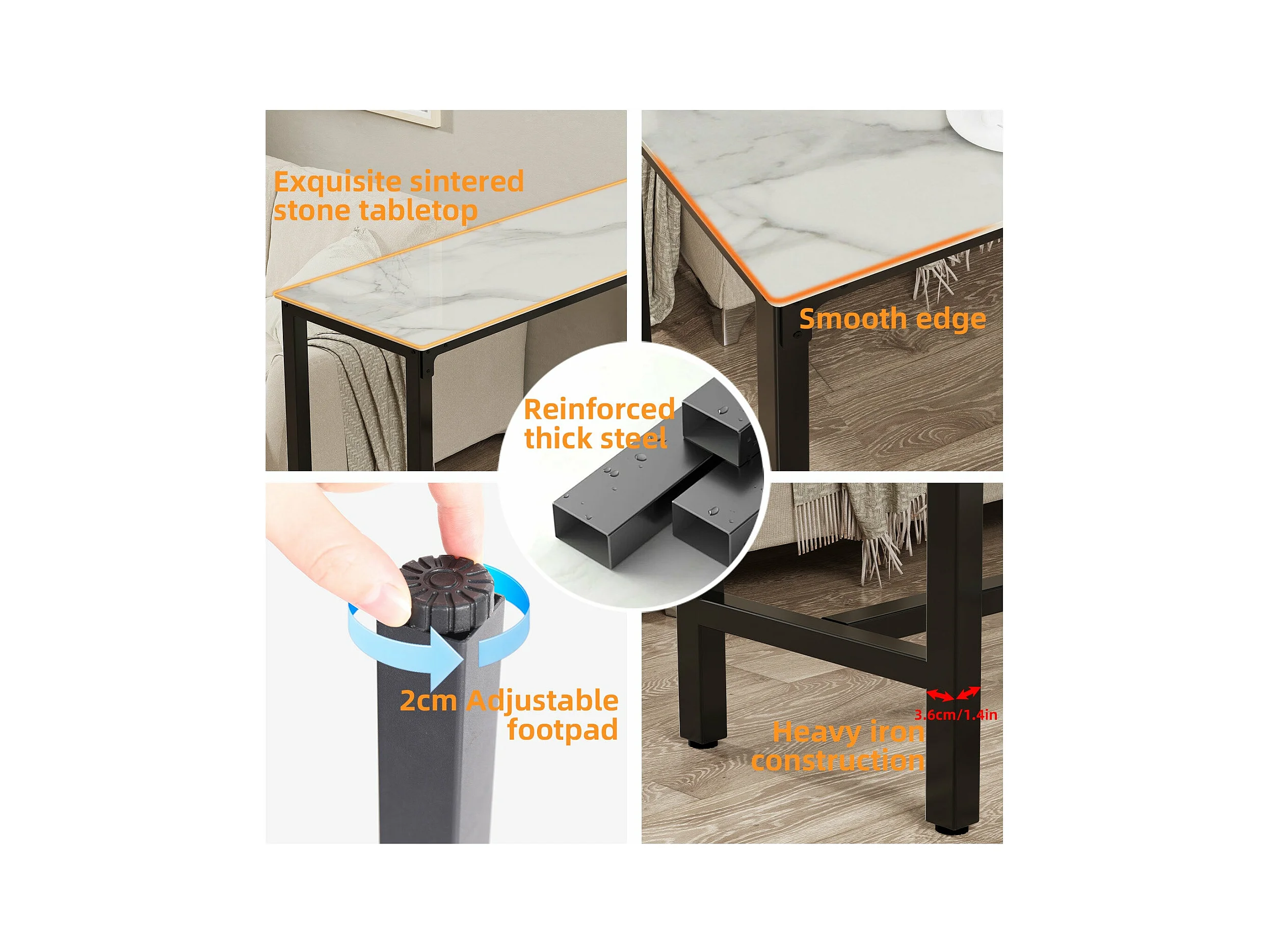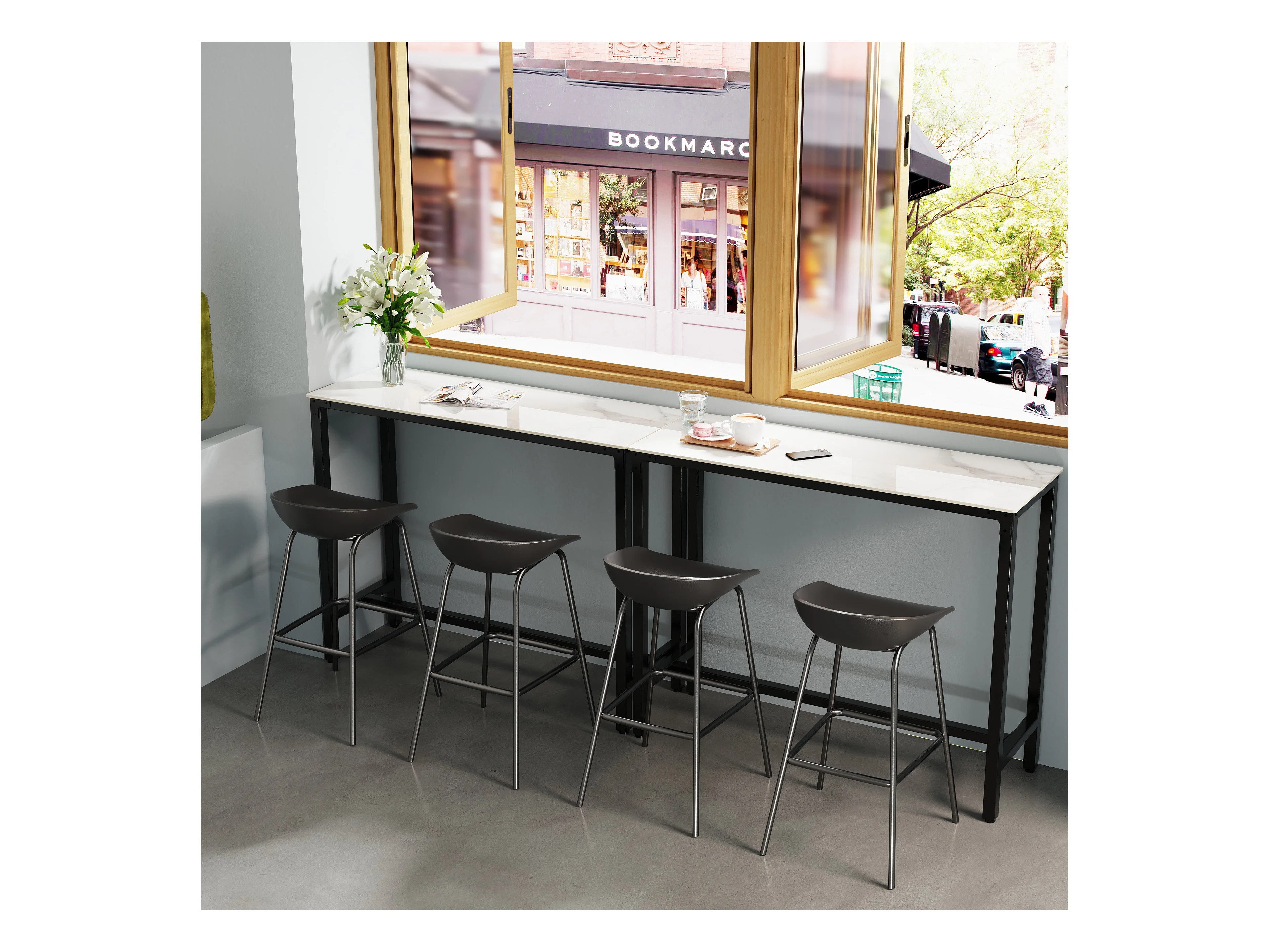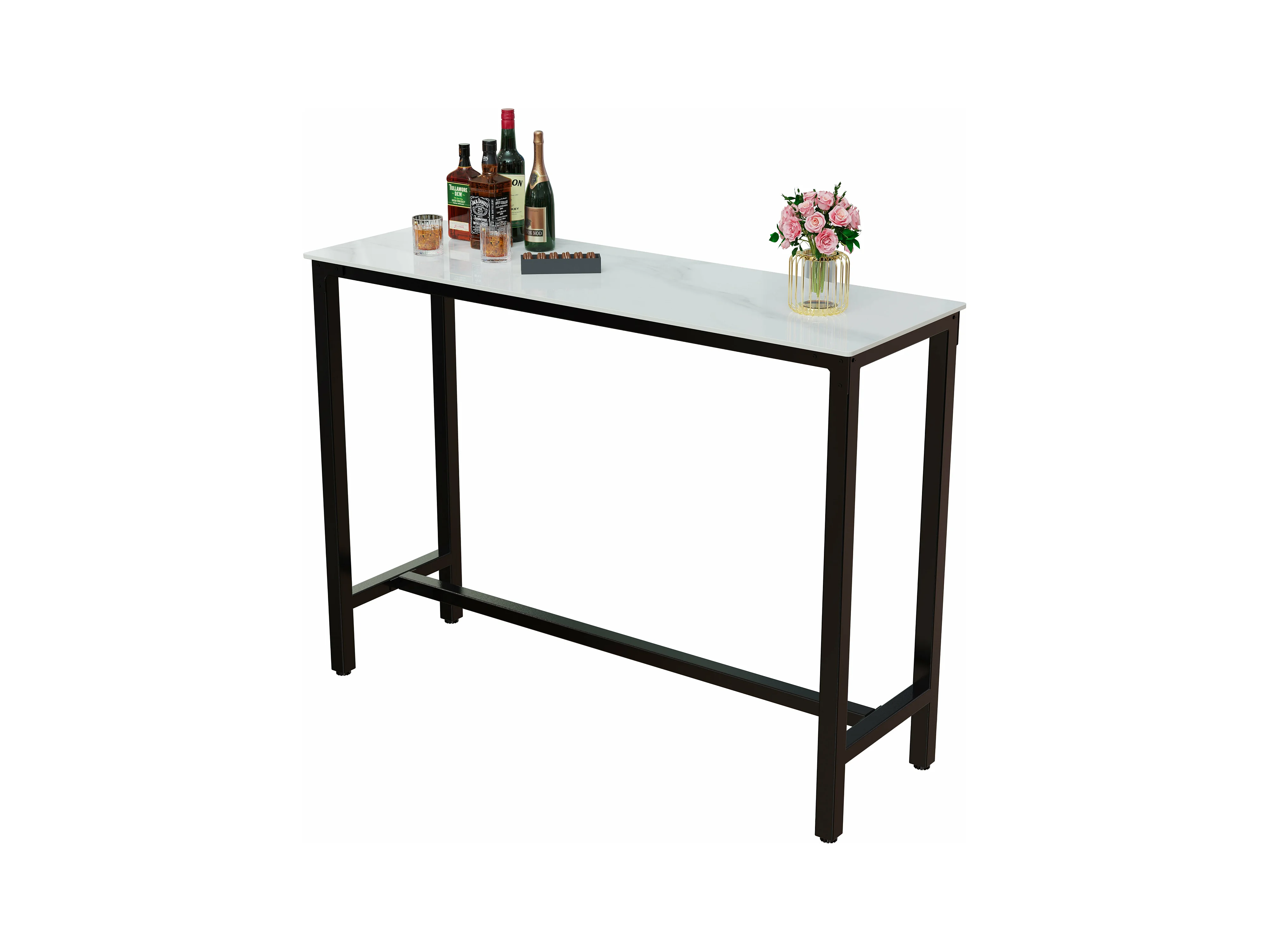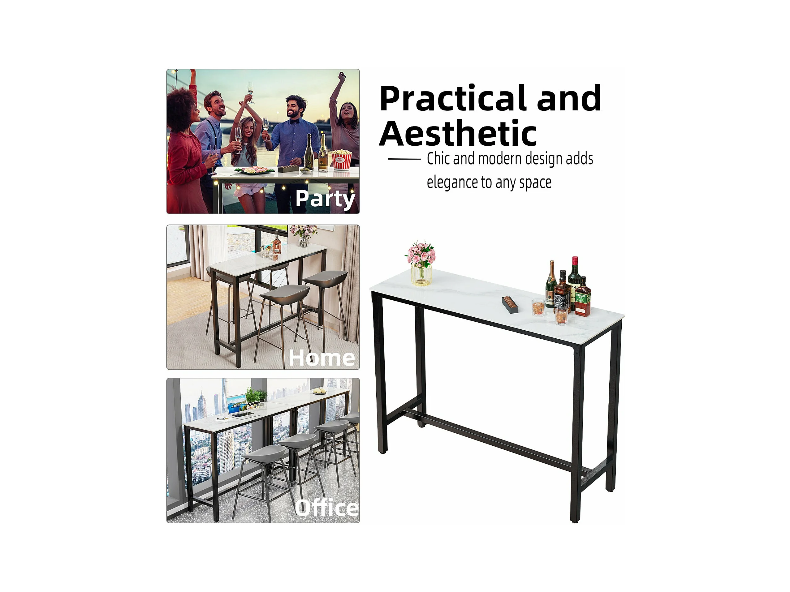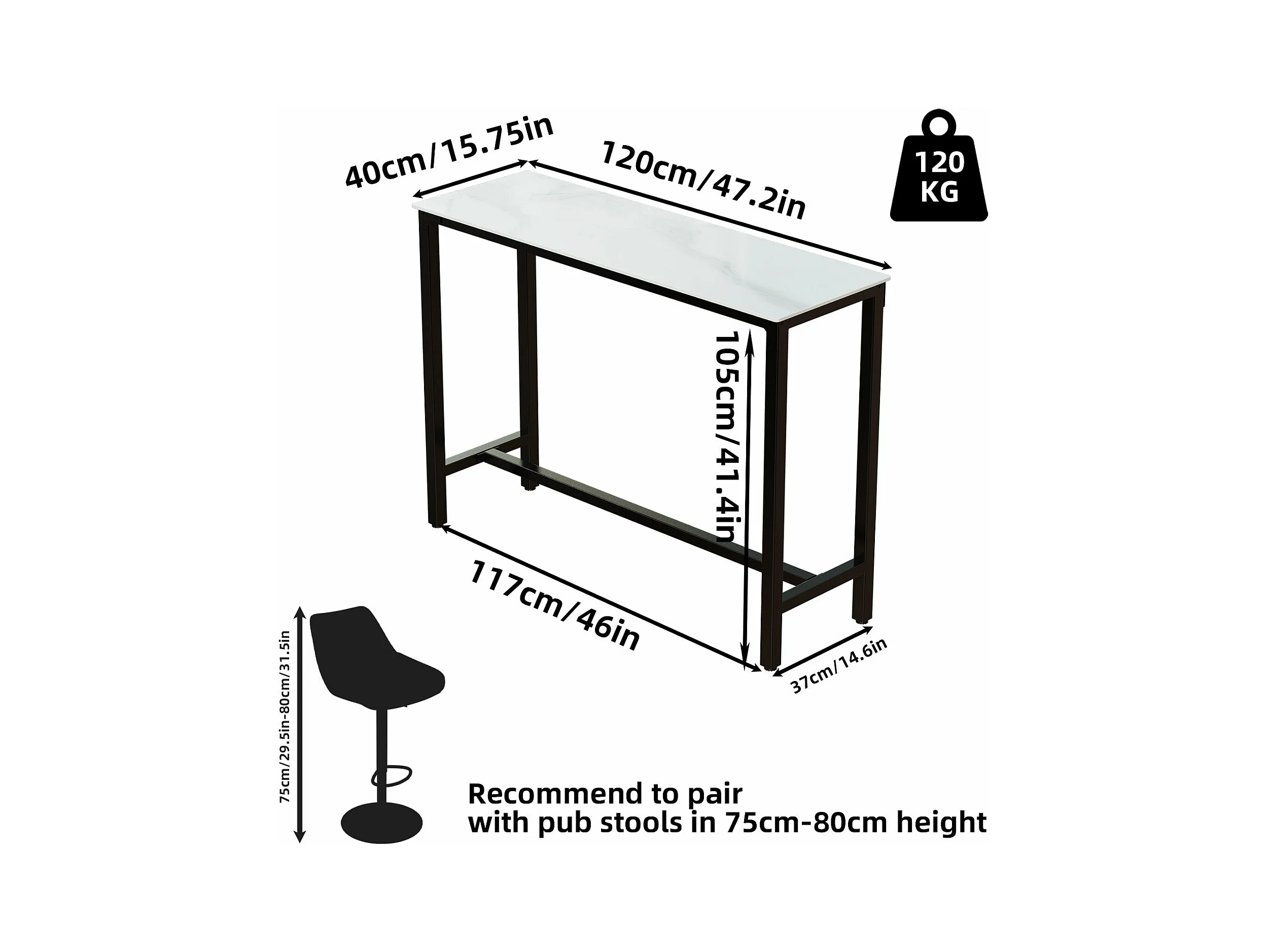 Table haute de cuisine en pierre frittée table de bar bistrot mange debout plateau aspect marbre 70x70x105cm