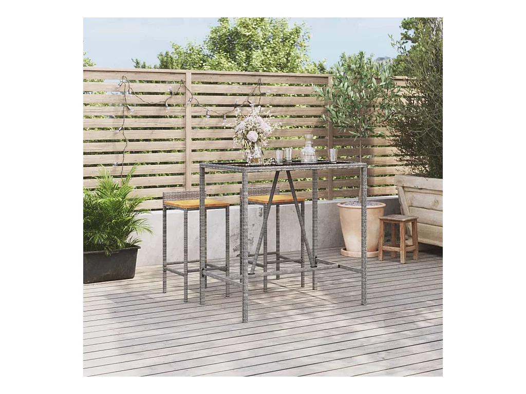 Table de bar et dessus en verre gris 110x70x110 cm poly rotin