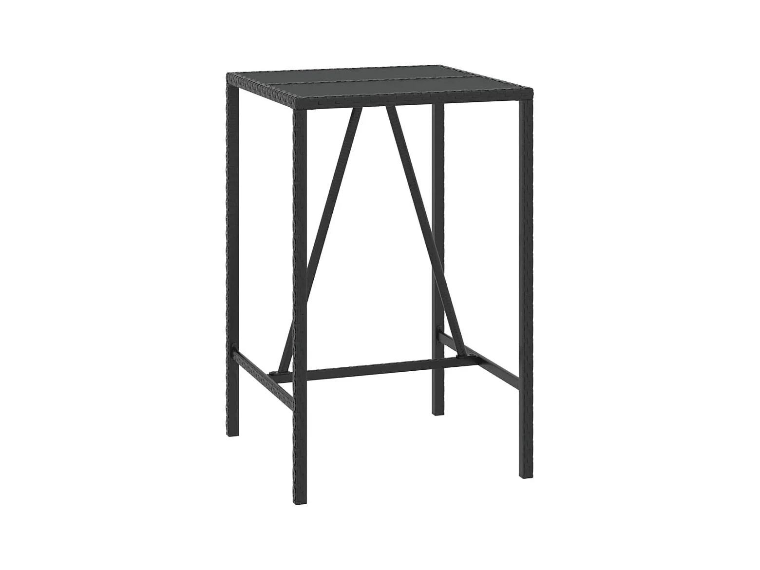 Table de bar et dessus en verre noir 70x70x110 cm poly rotin