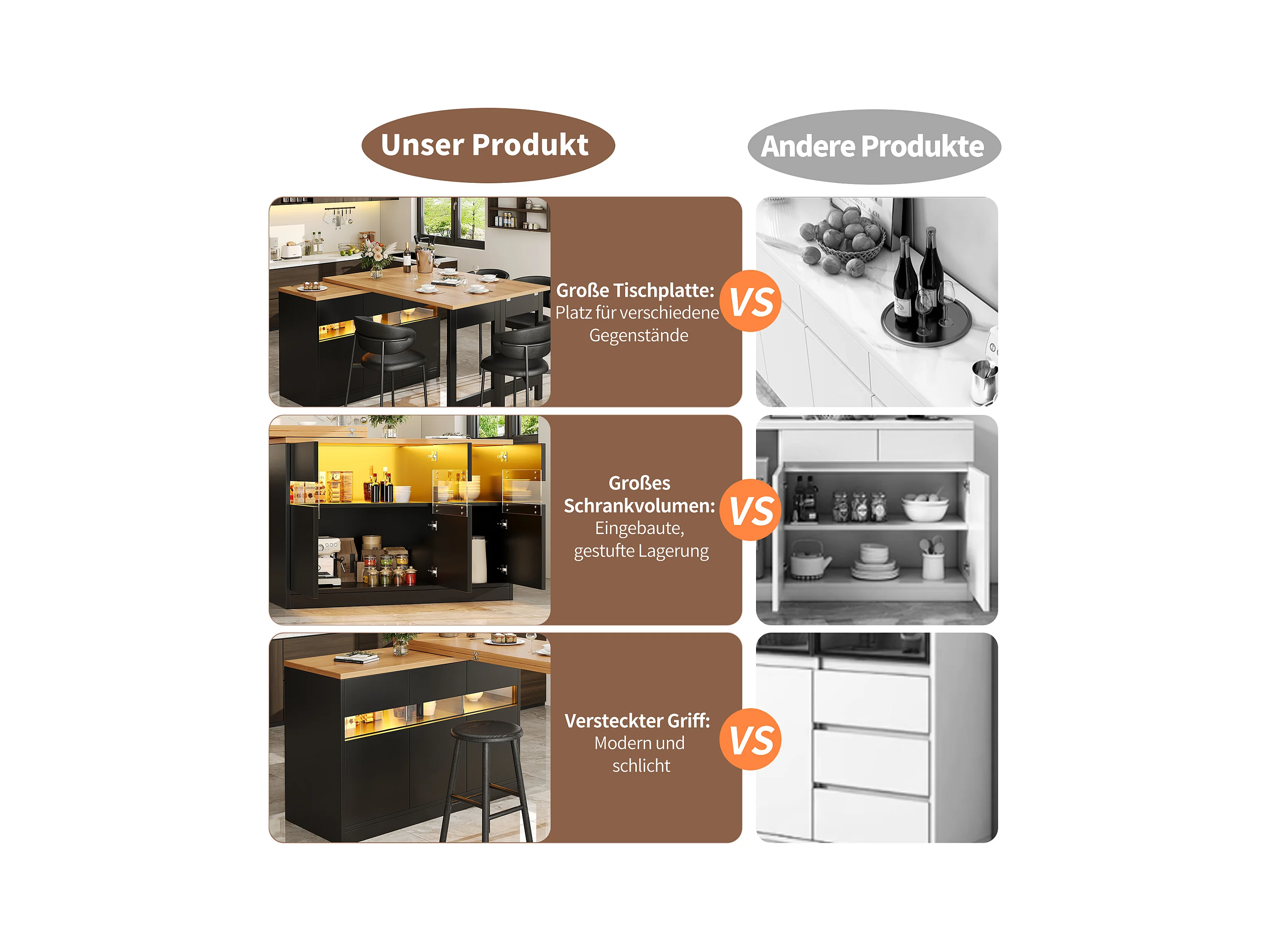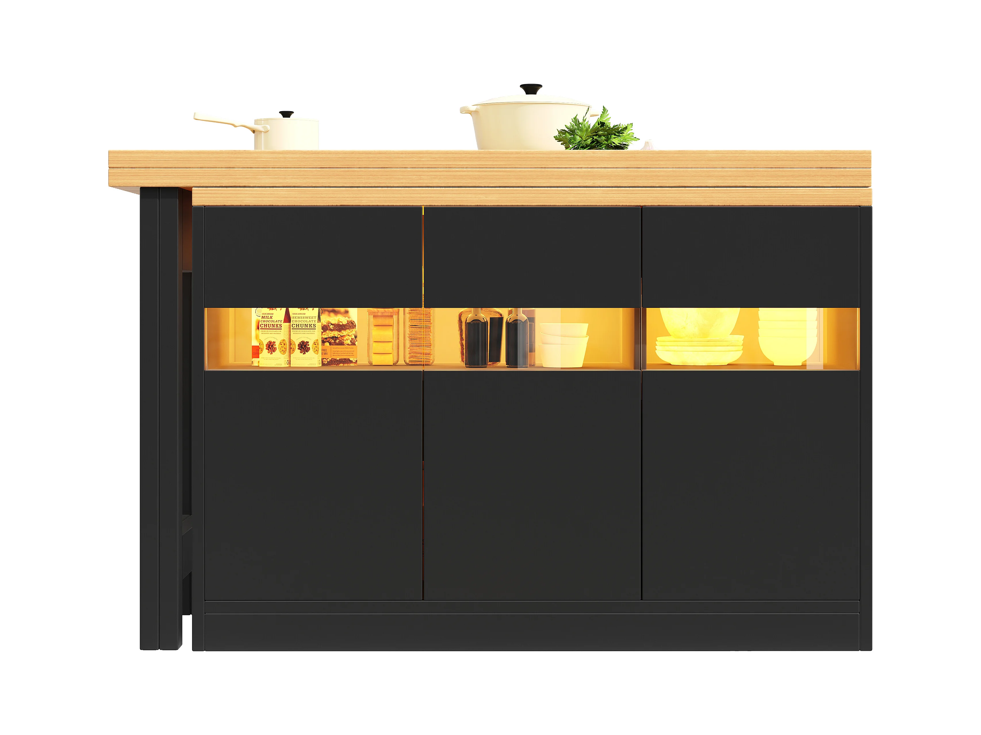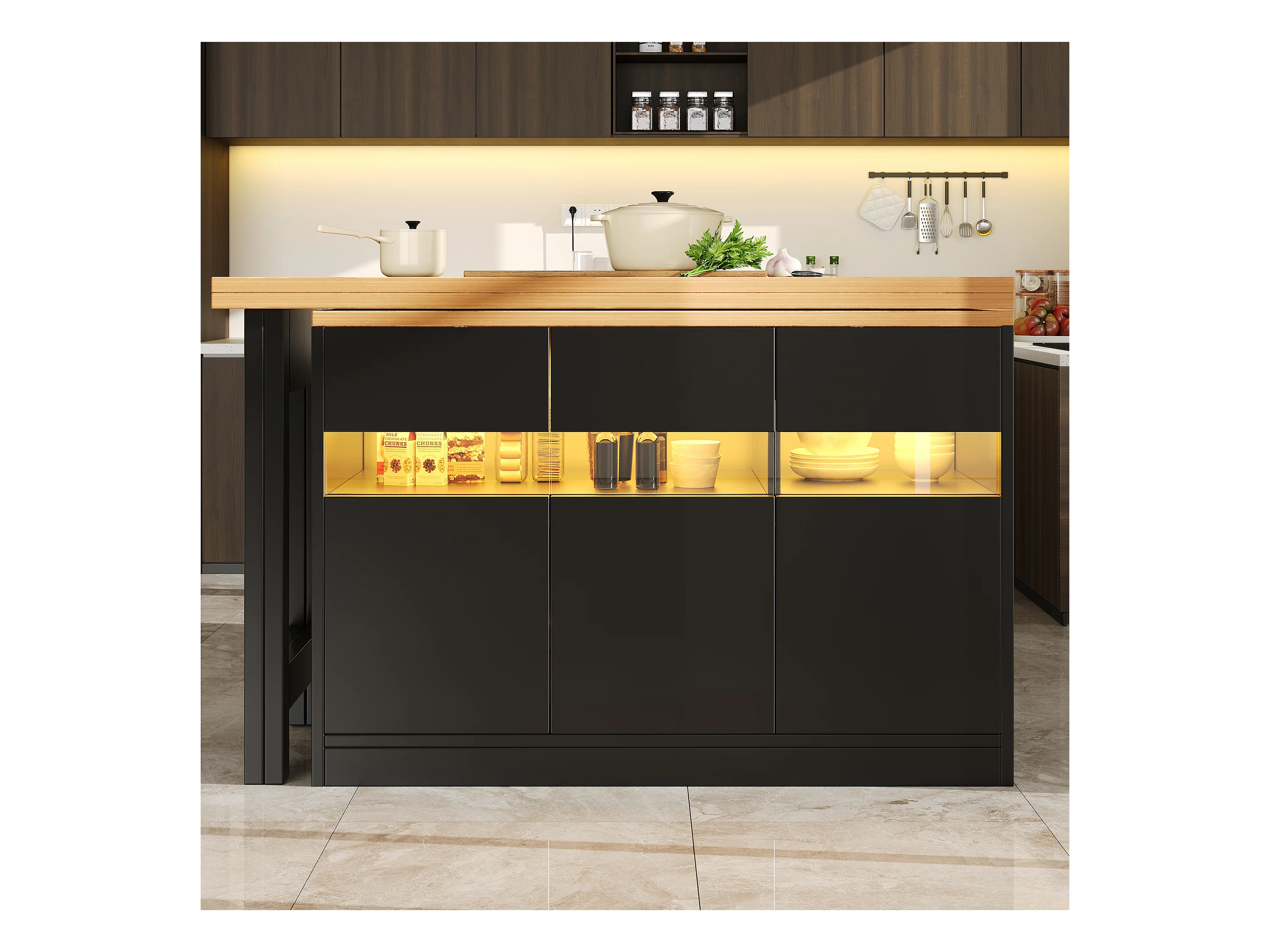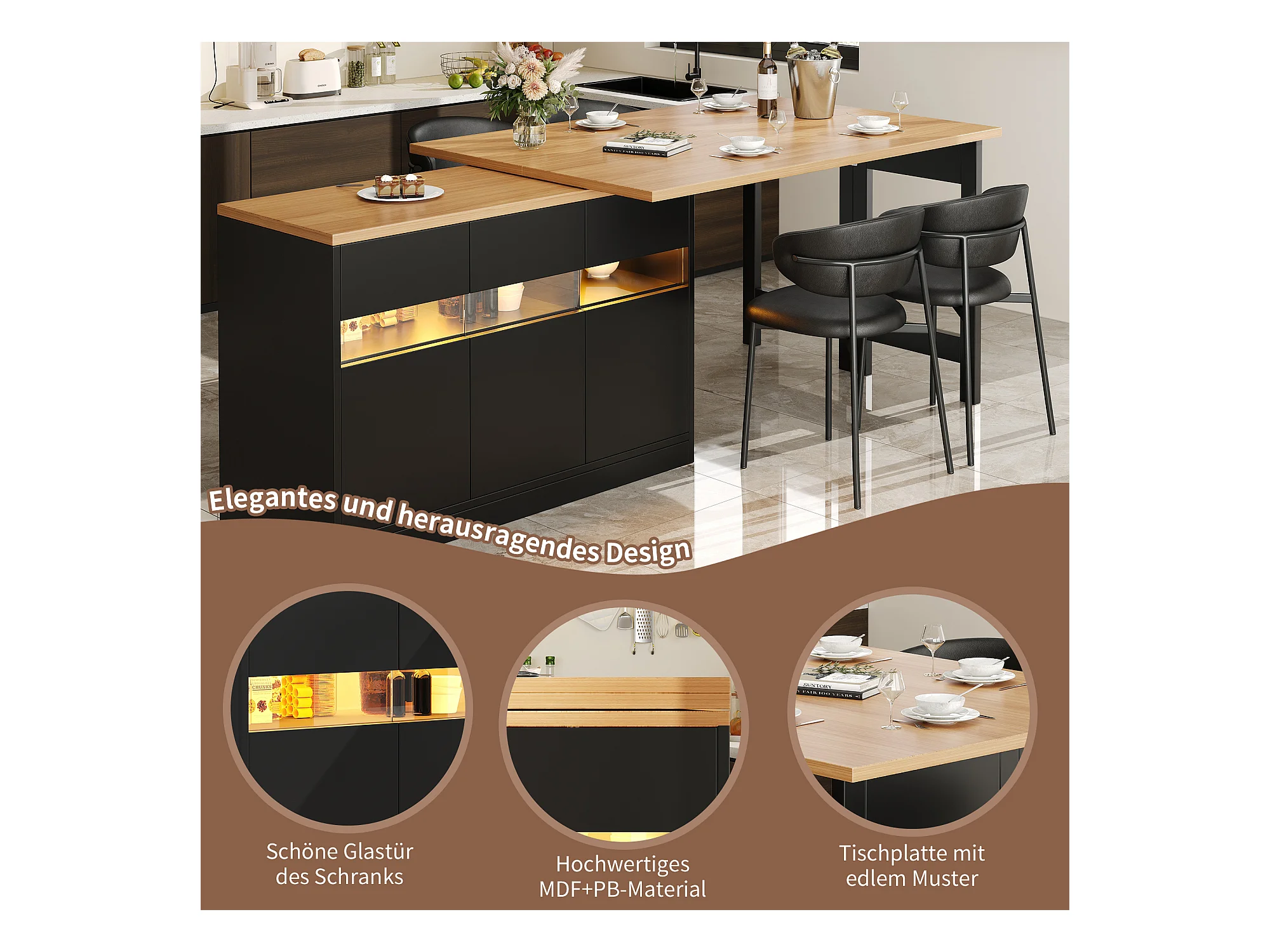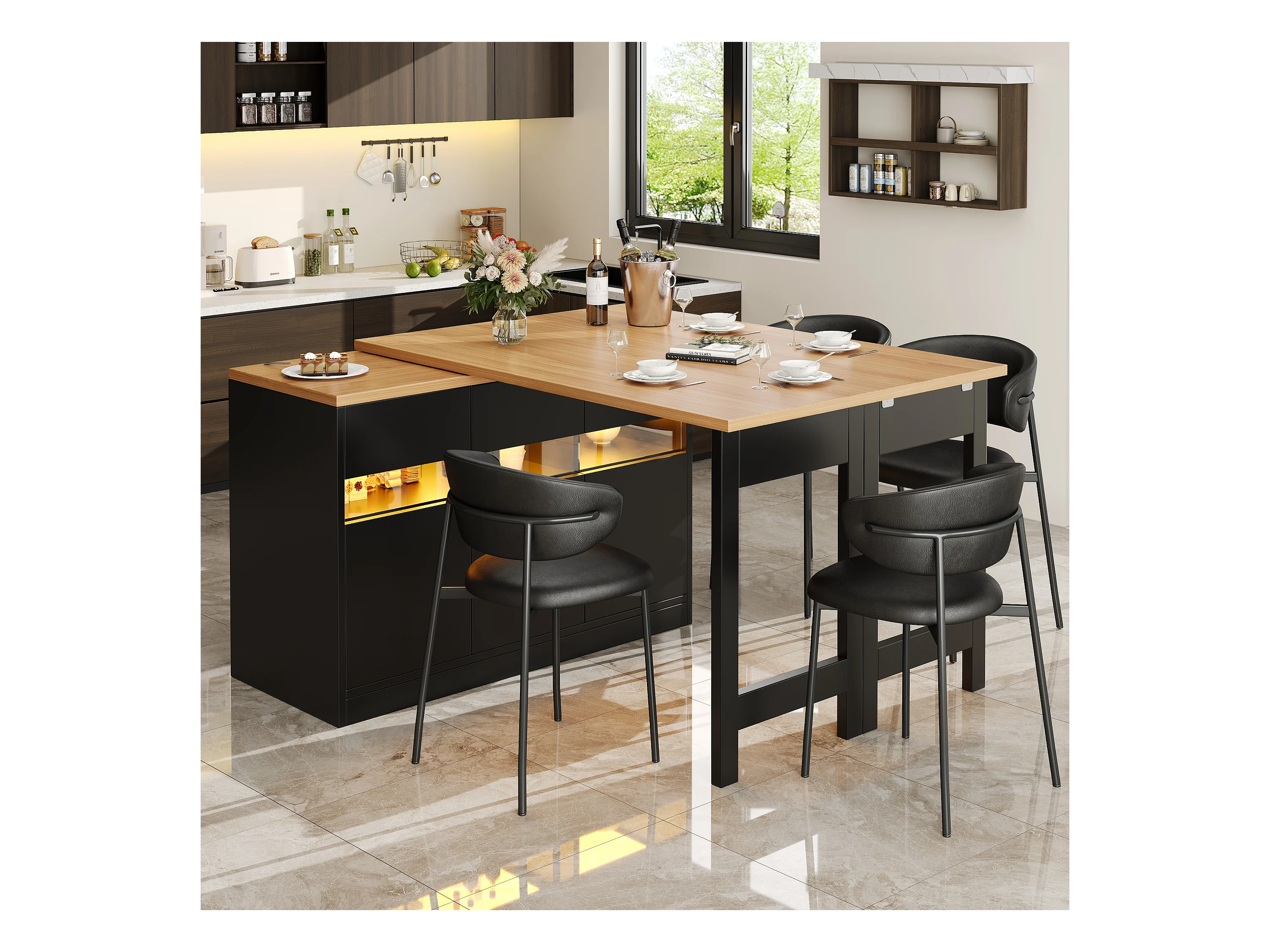 Table de bar extensible - 120/180 x 75.8 cm - avec Leds + 3 portes - rotation à 360° - MDF - noir