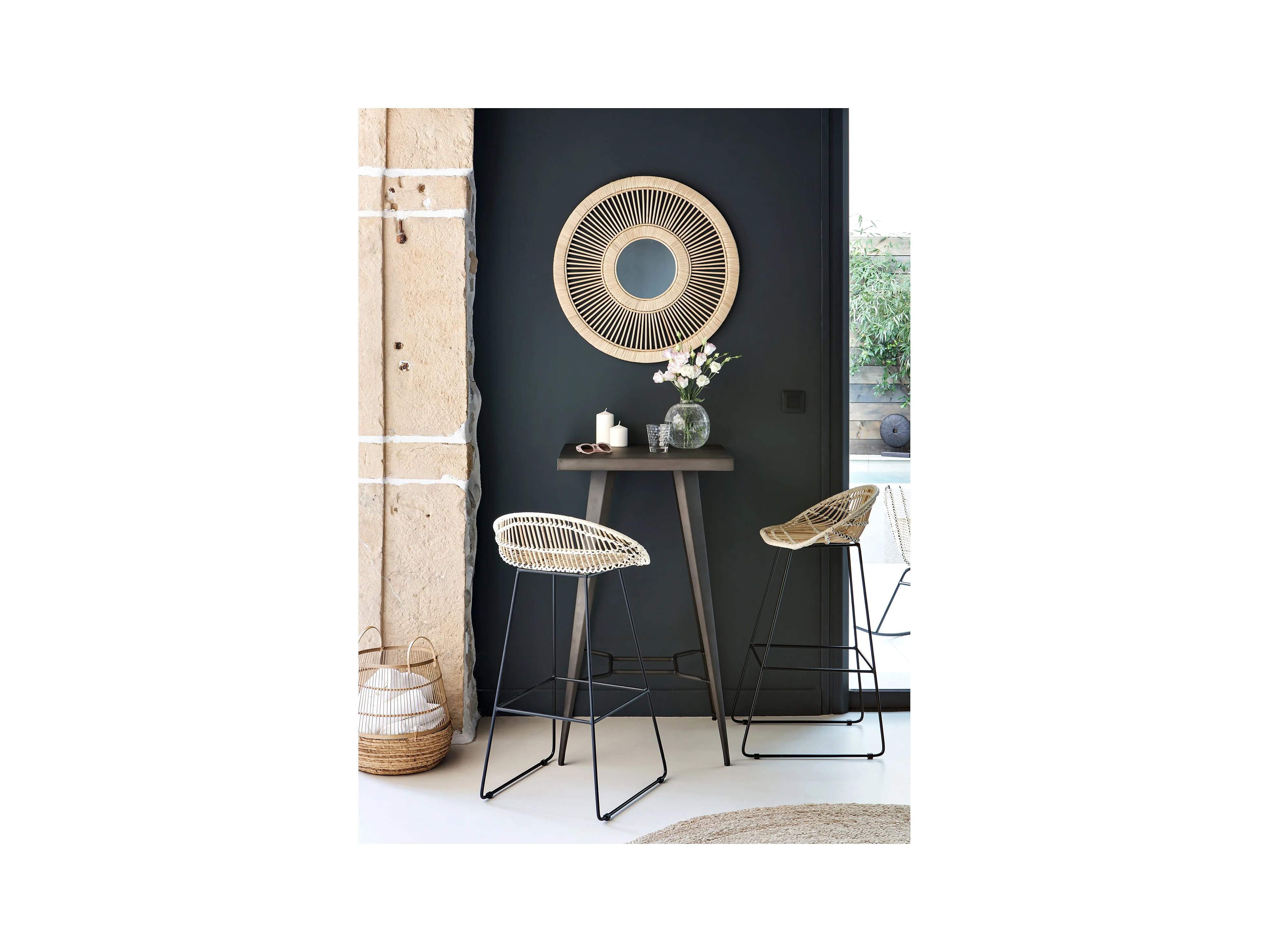 Mange-debout 60 x 60 cm - modèle Round pierre métallisée chants laiton