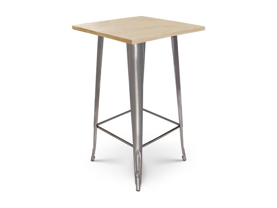 Table de bar "Mange Debout" style industriel en métal brut et plateau bois clair - 60x60 cm