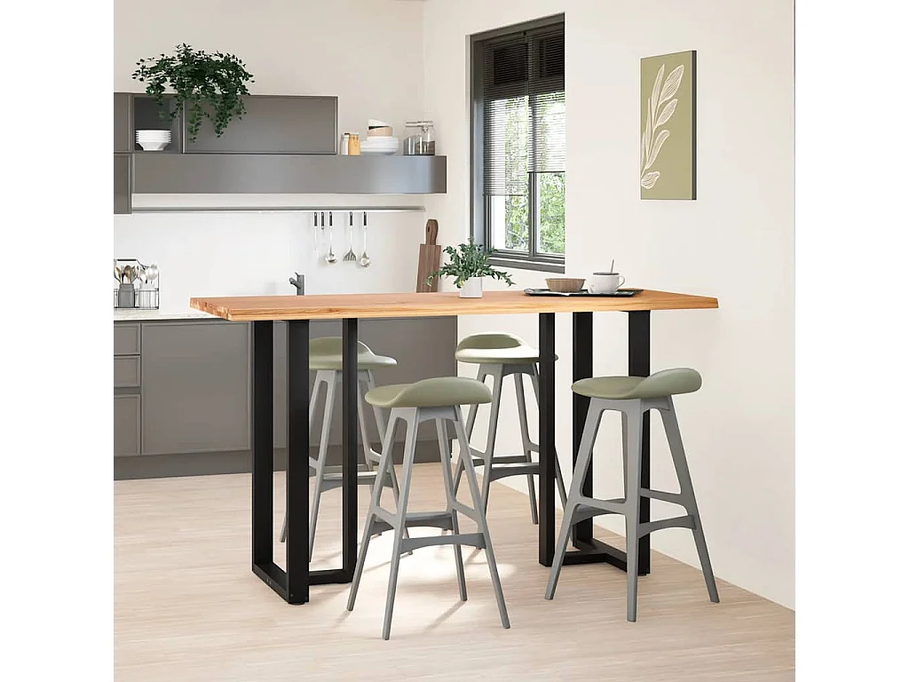 Table de bar marron clair bois de chêne massif rectangulaire