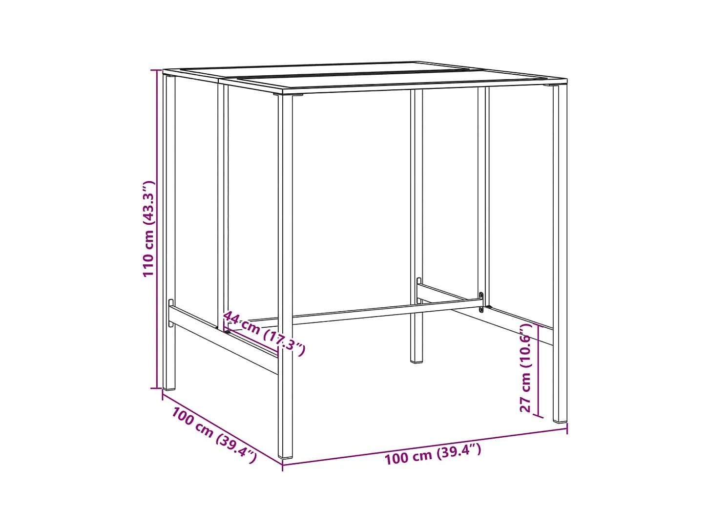 Table de bar noir 100x100x110 cm acier enduit de poudre