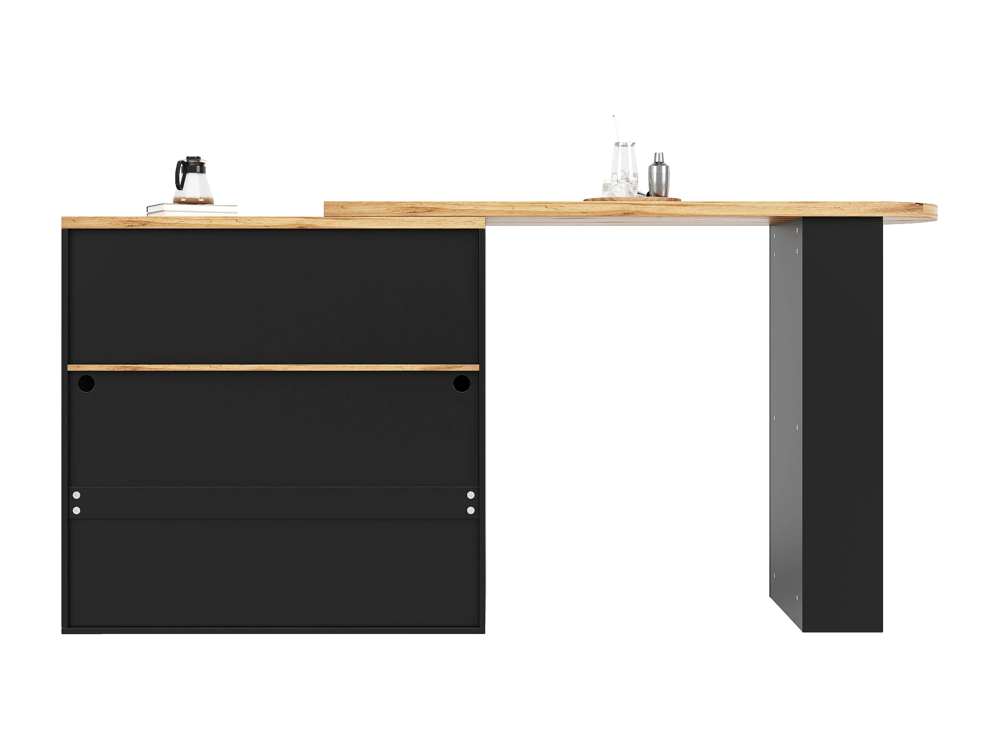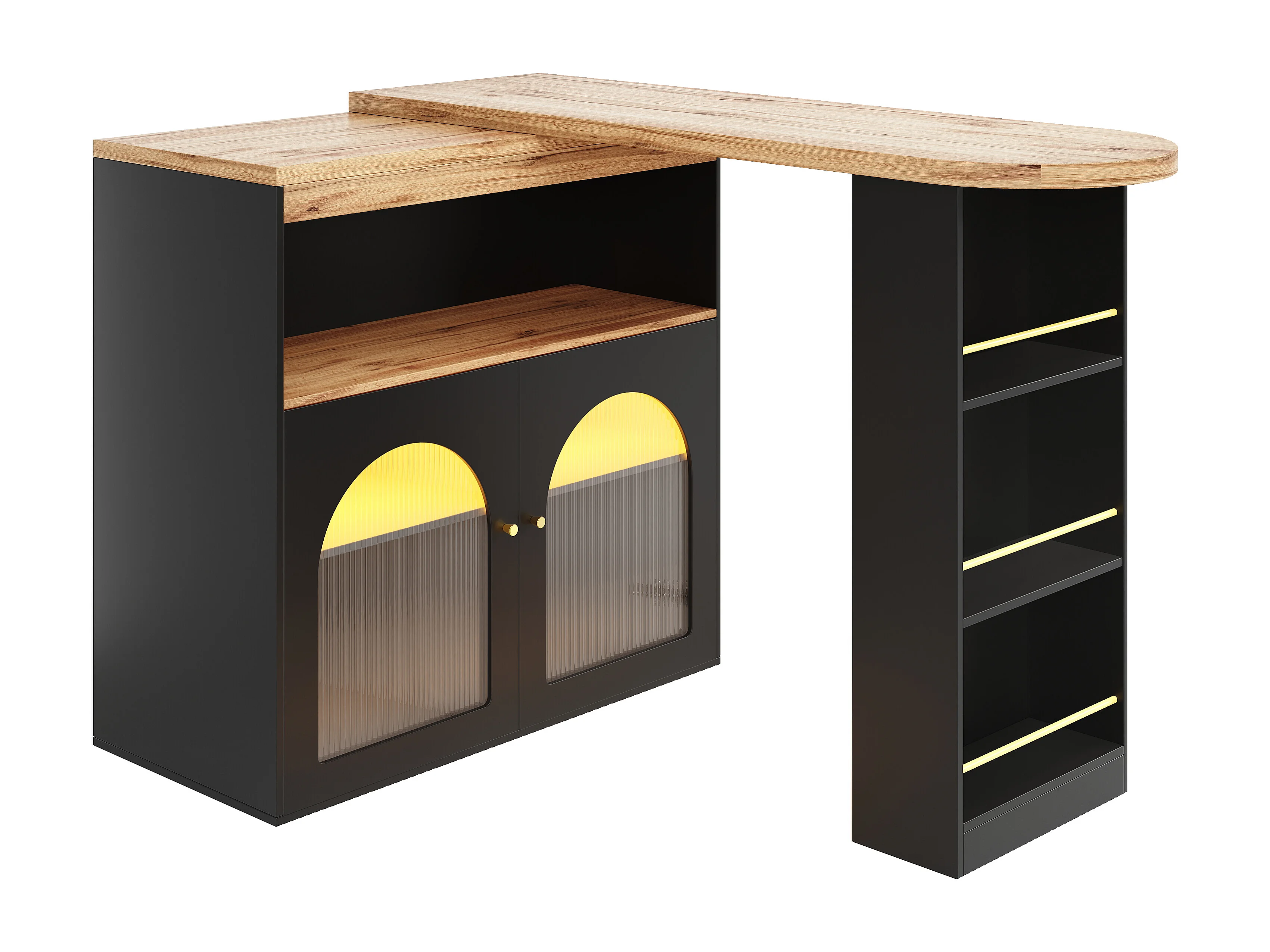 Table de bar rotative moderne, 138-193X39X105cm, rangement, LED, métal+ verre+ panneaux de particules noir
