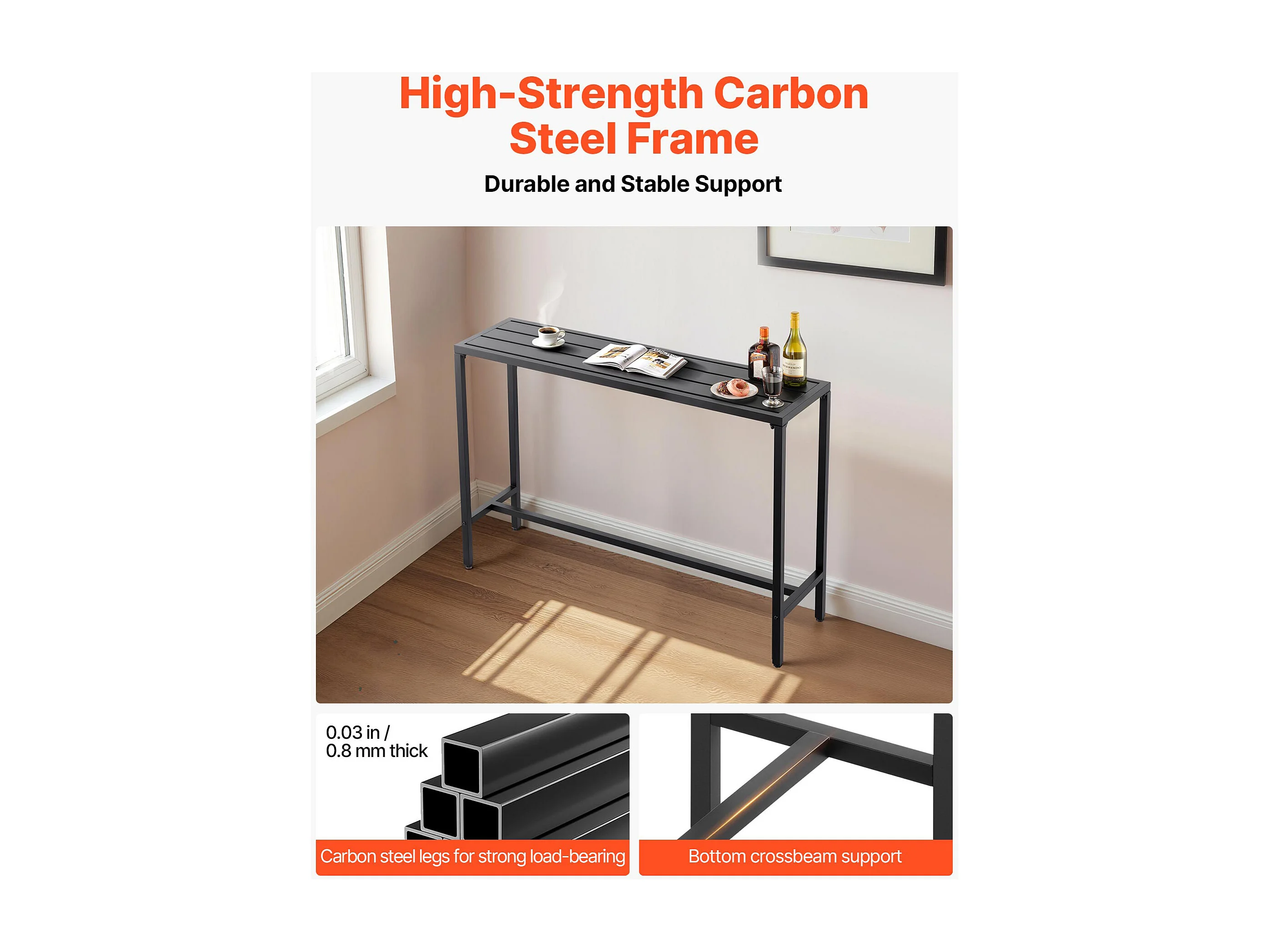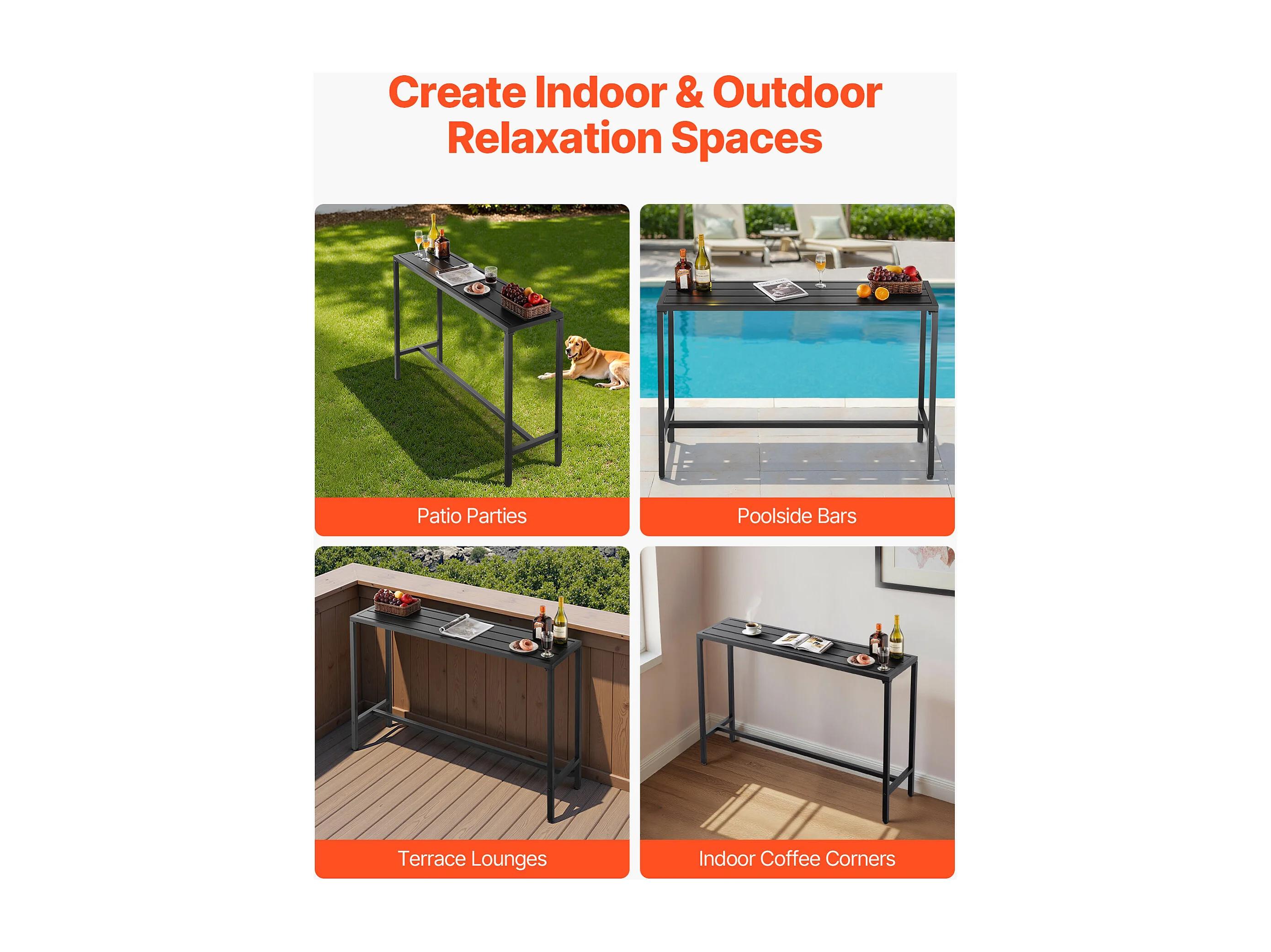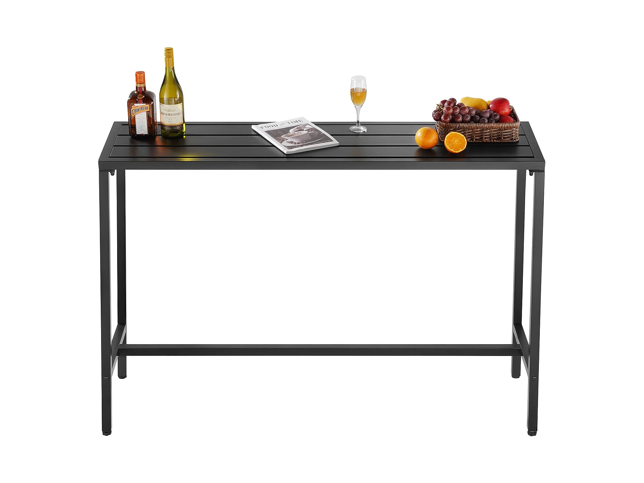 Table de Bar SucceBuy Haute Extérieur, 140 x 37,5 cm, Table à Manger Rectangulaire, avec Plateau Étanche, Structure en Métal Robuste, Mobilier de Jardin