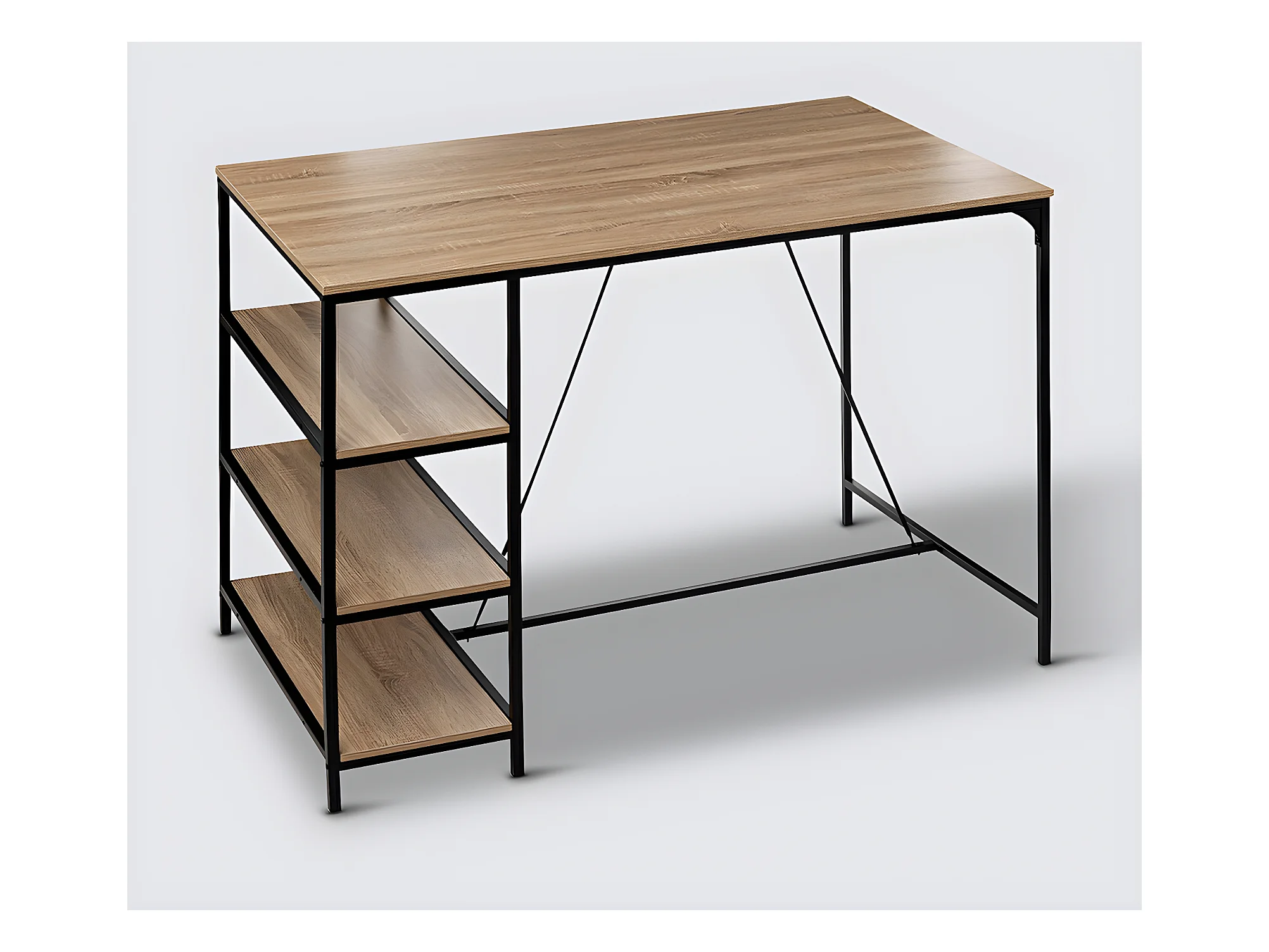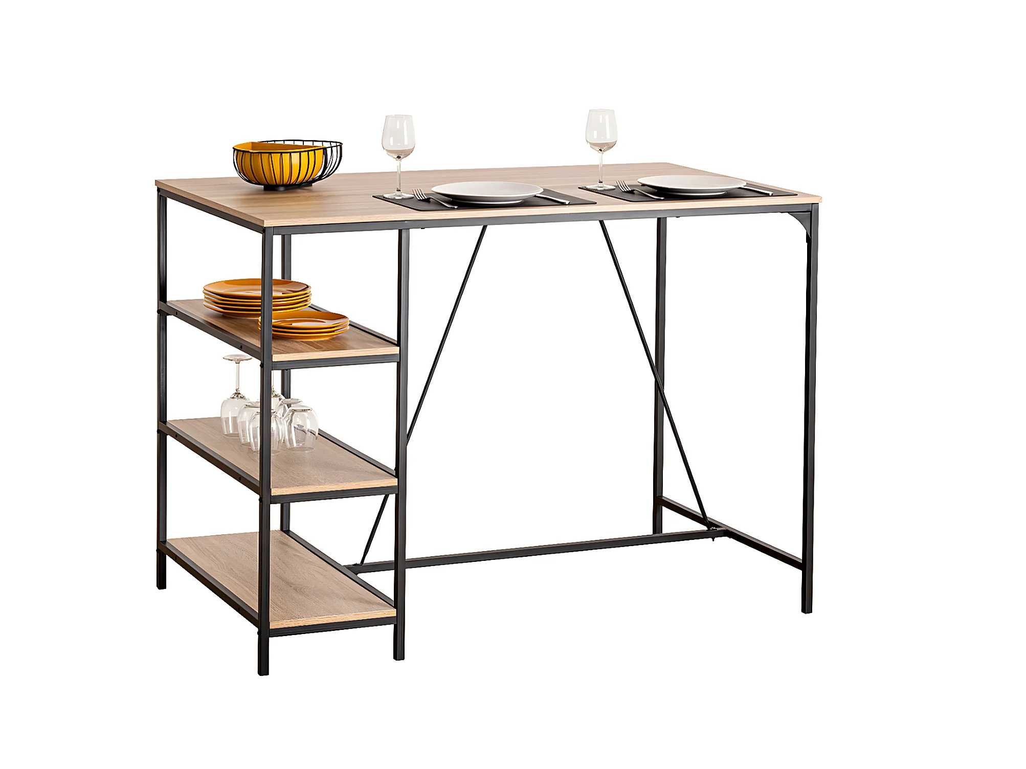 Table de bar, table haute avec 3 étagères en bois Beige et métal coloris noir