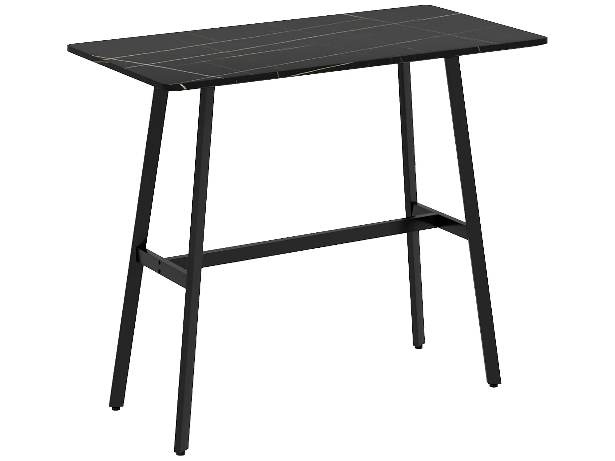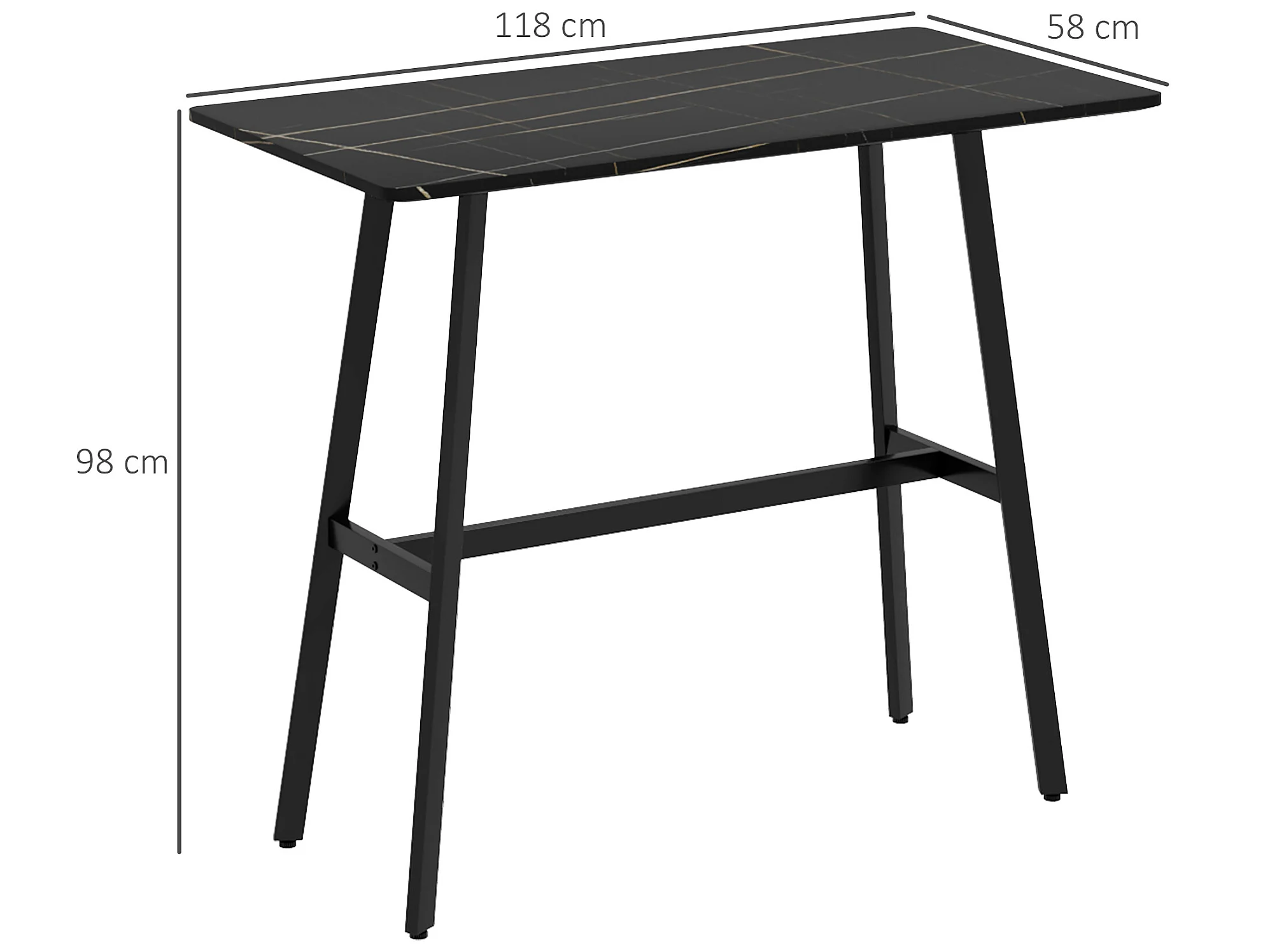 Table de bar - table mange debout - dim. 118L x 58l x 98H cm - châssis piètement acier noir plateau aspect marbre noir veiné blanc