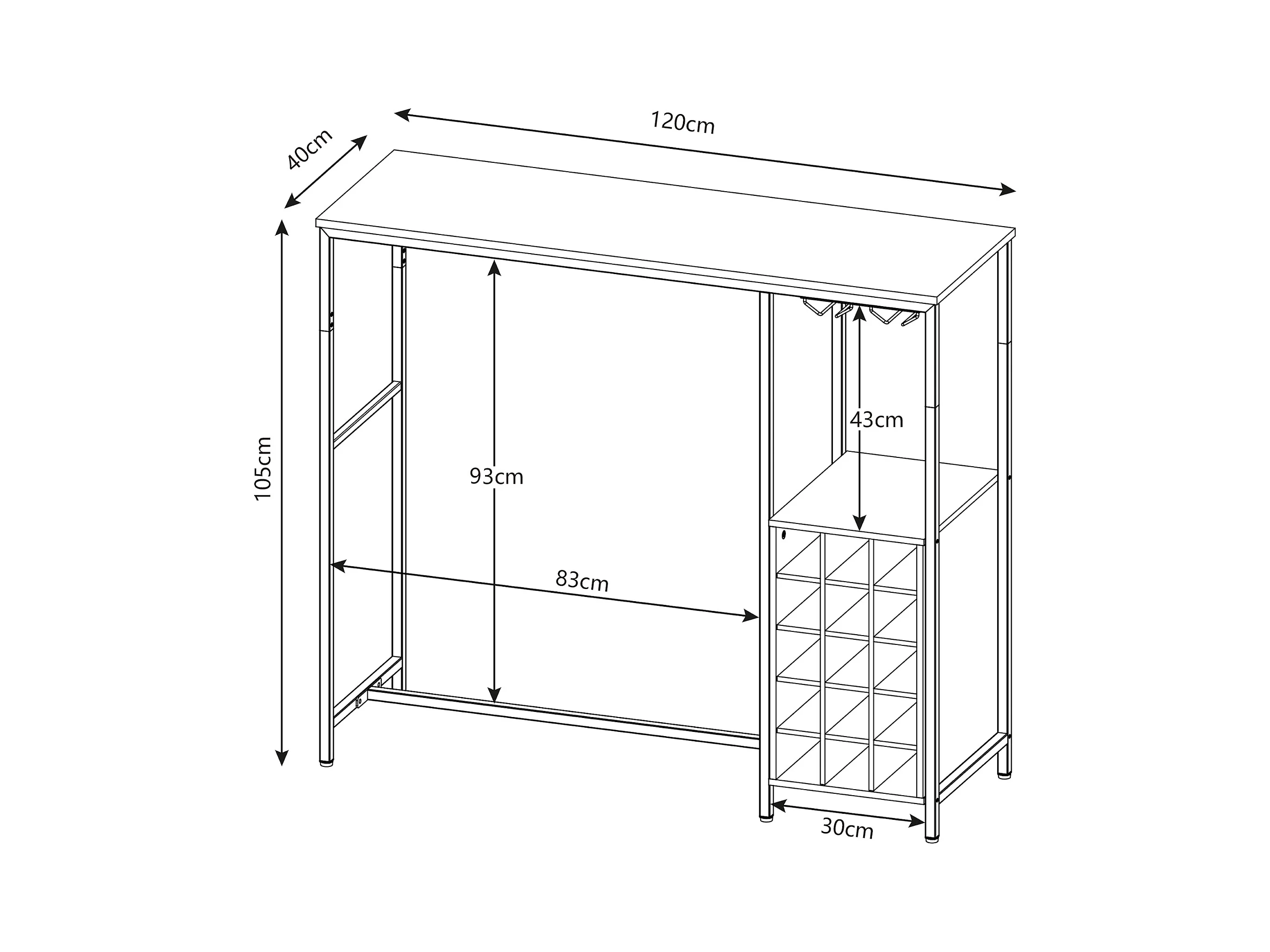 Table de bar Trøndelag 120 x 40 x 105 cm noir effet noyer [en.casa]