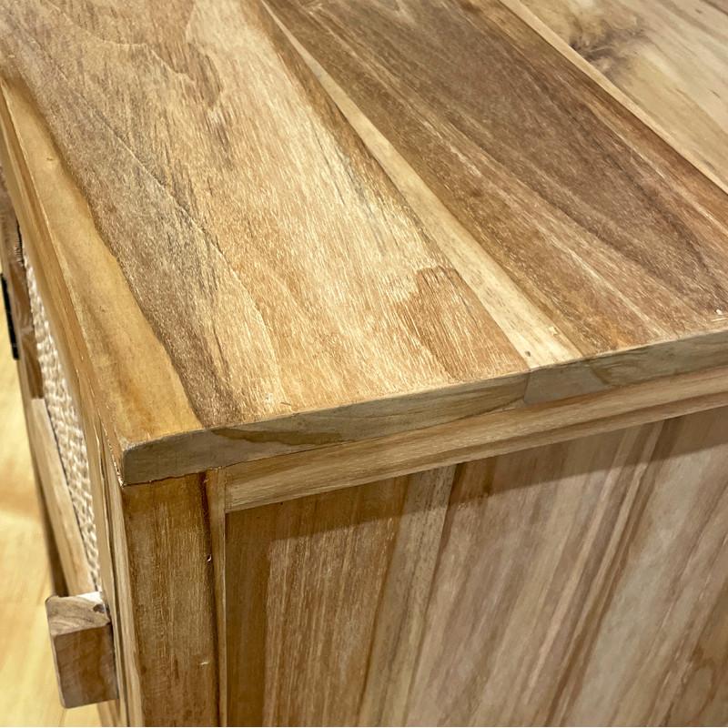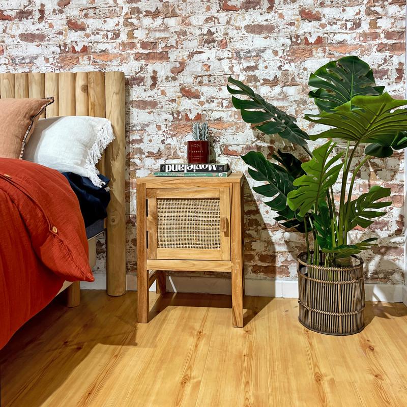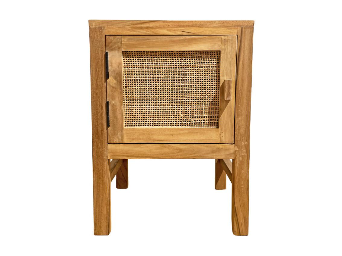 Table de chevet 1 porte en teck massif et cannage rotin – CAMILO