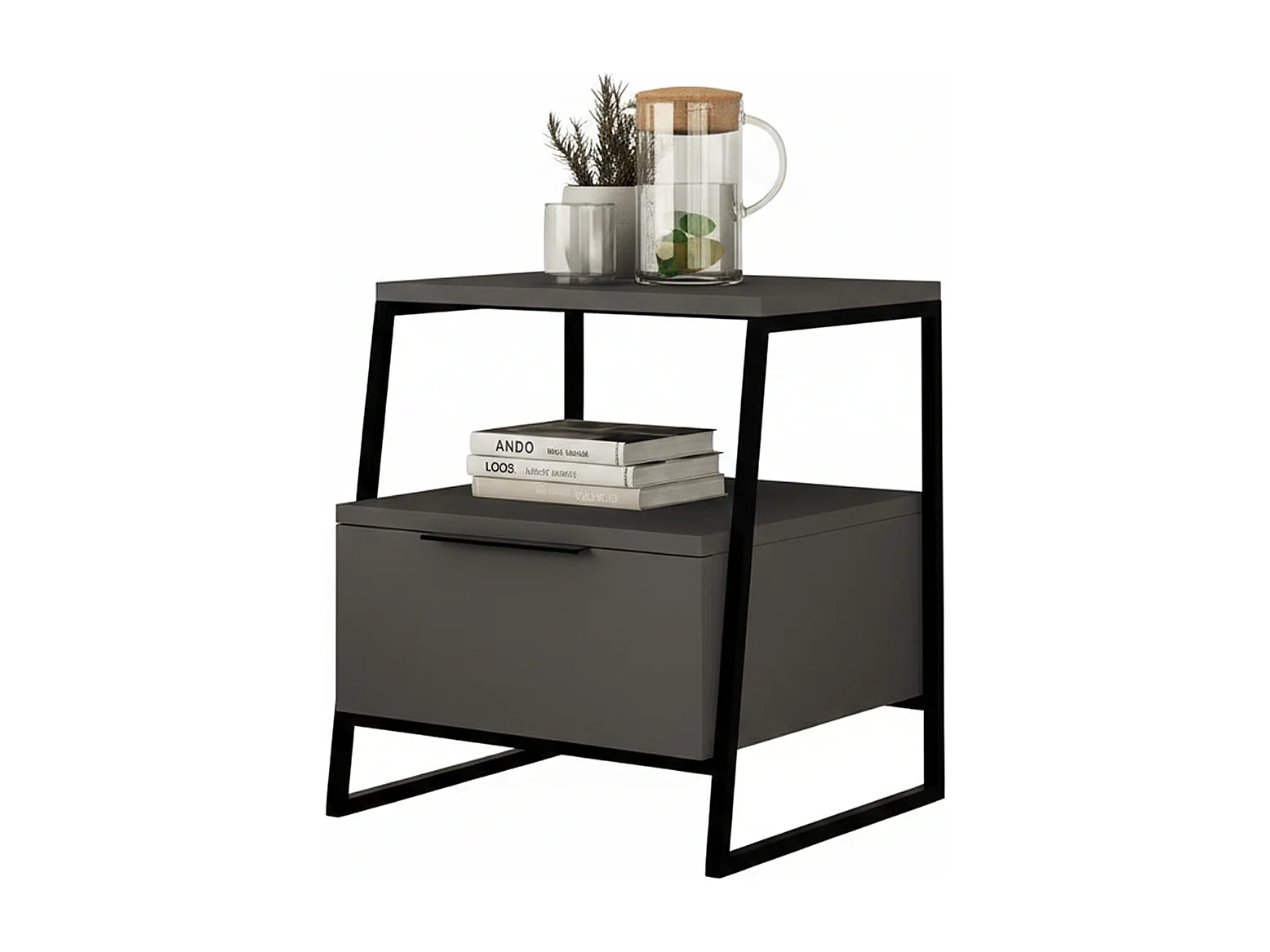 Table de chevet 1 porte gris anthracite 45 cm - Aveline