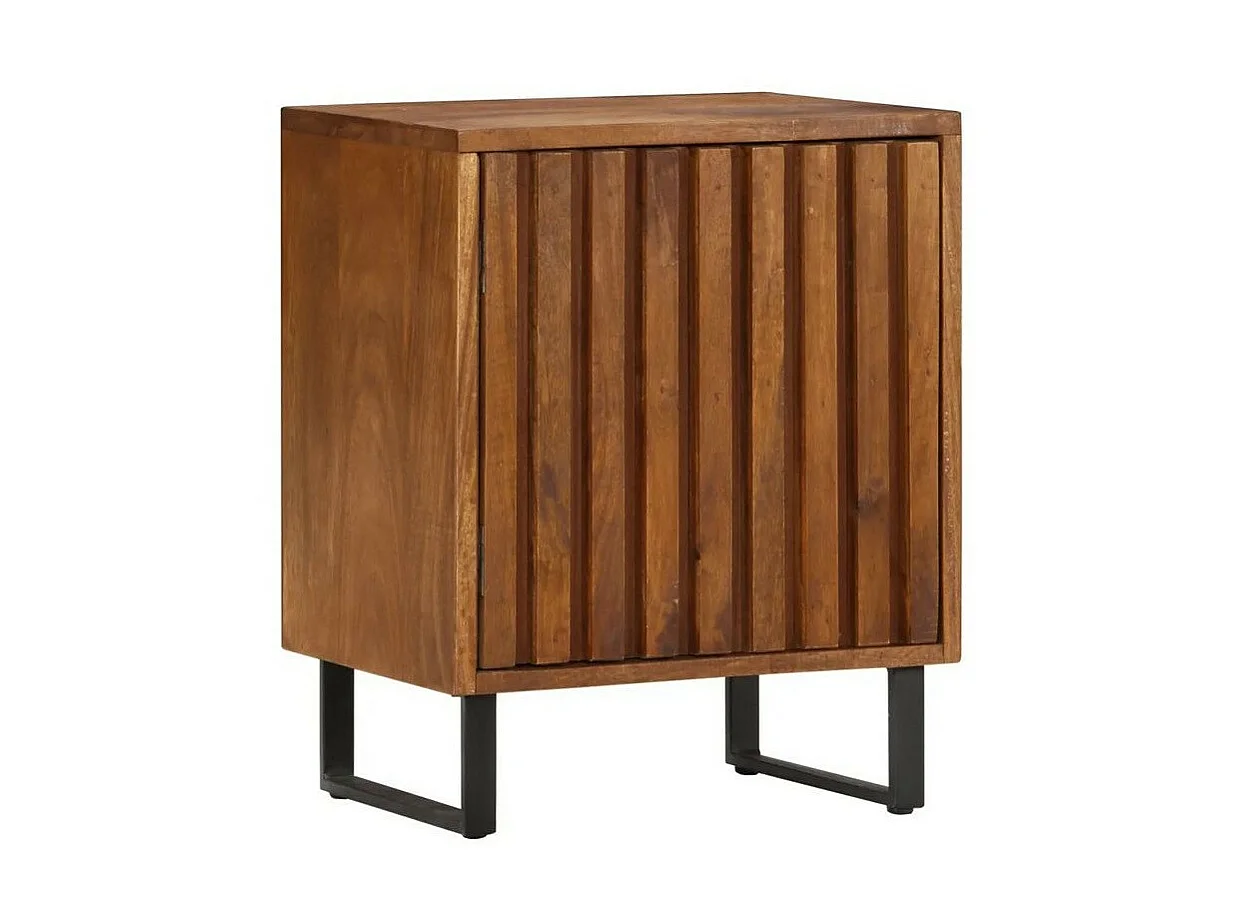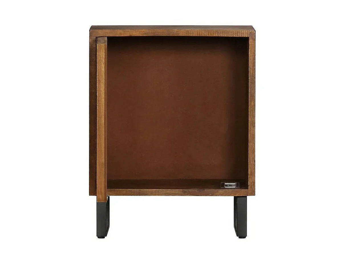Table de chevet 1 porte manguier massif foncé et métal Oulik