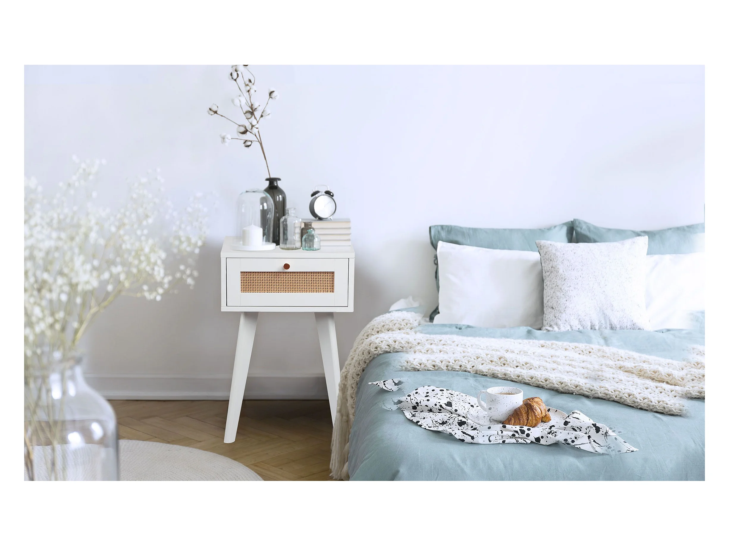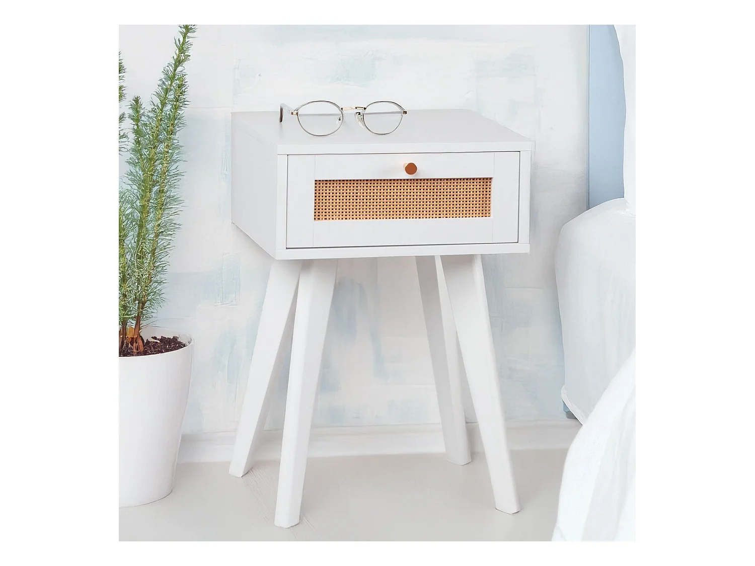 Table de chevet 1 tiroir avec cannage Dalgora L40cm Blanc