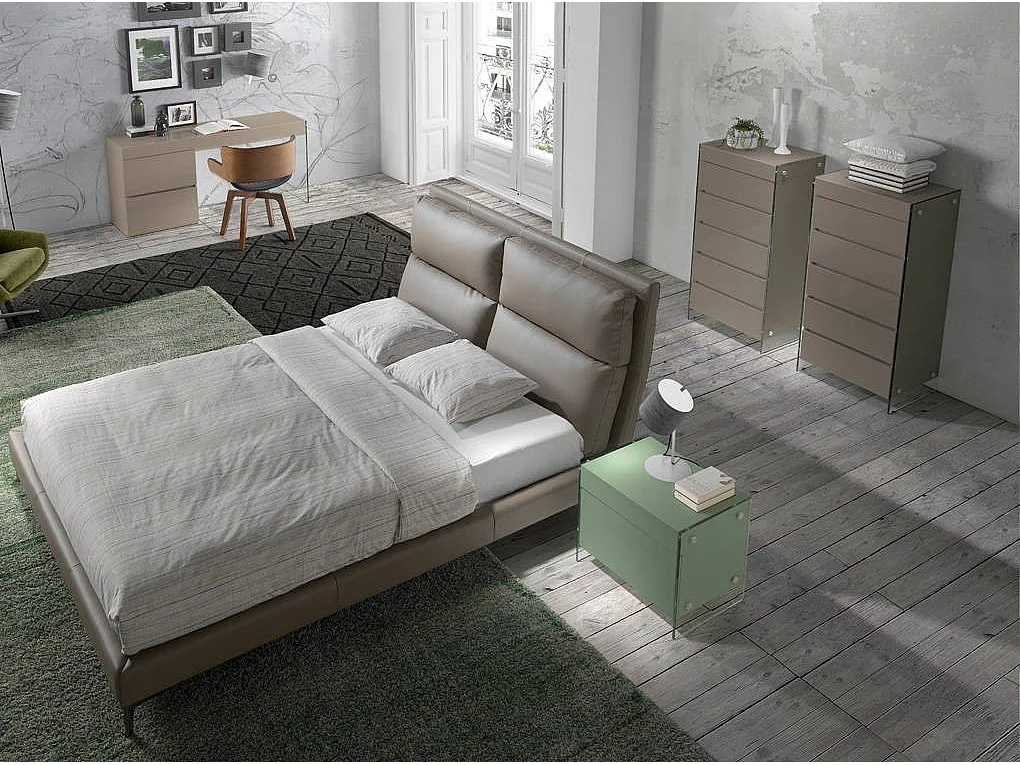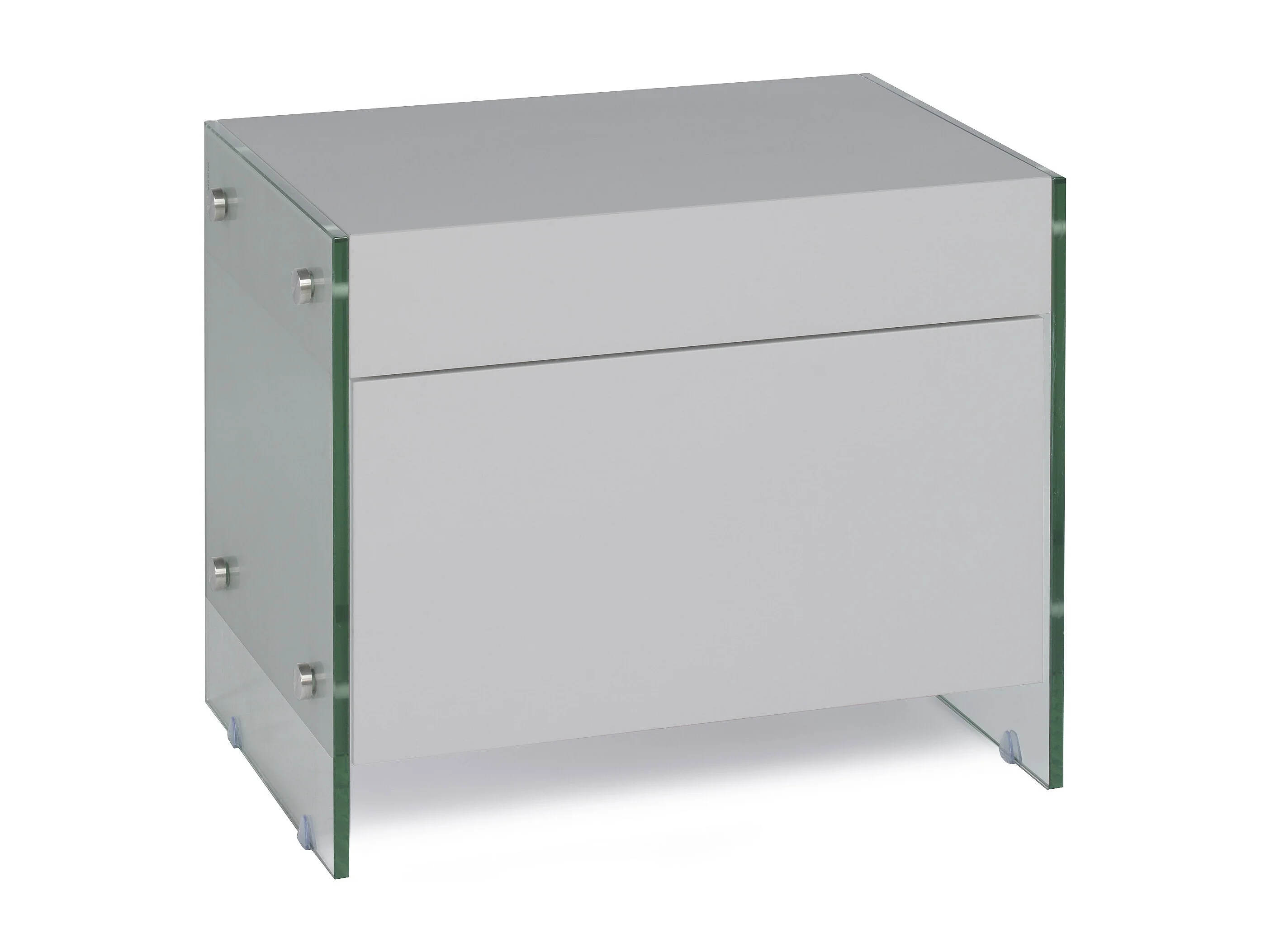 Table de chevet 1 tiroir bois laqué gris et verre trempé Elly