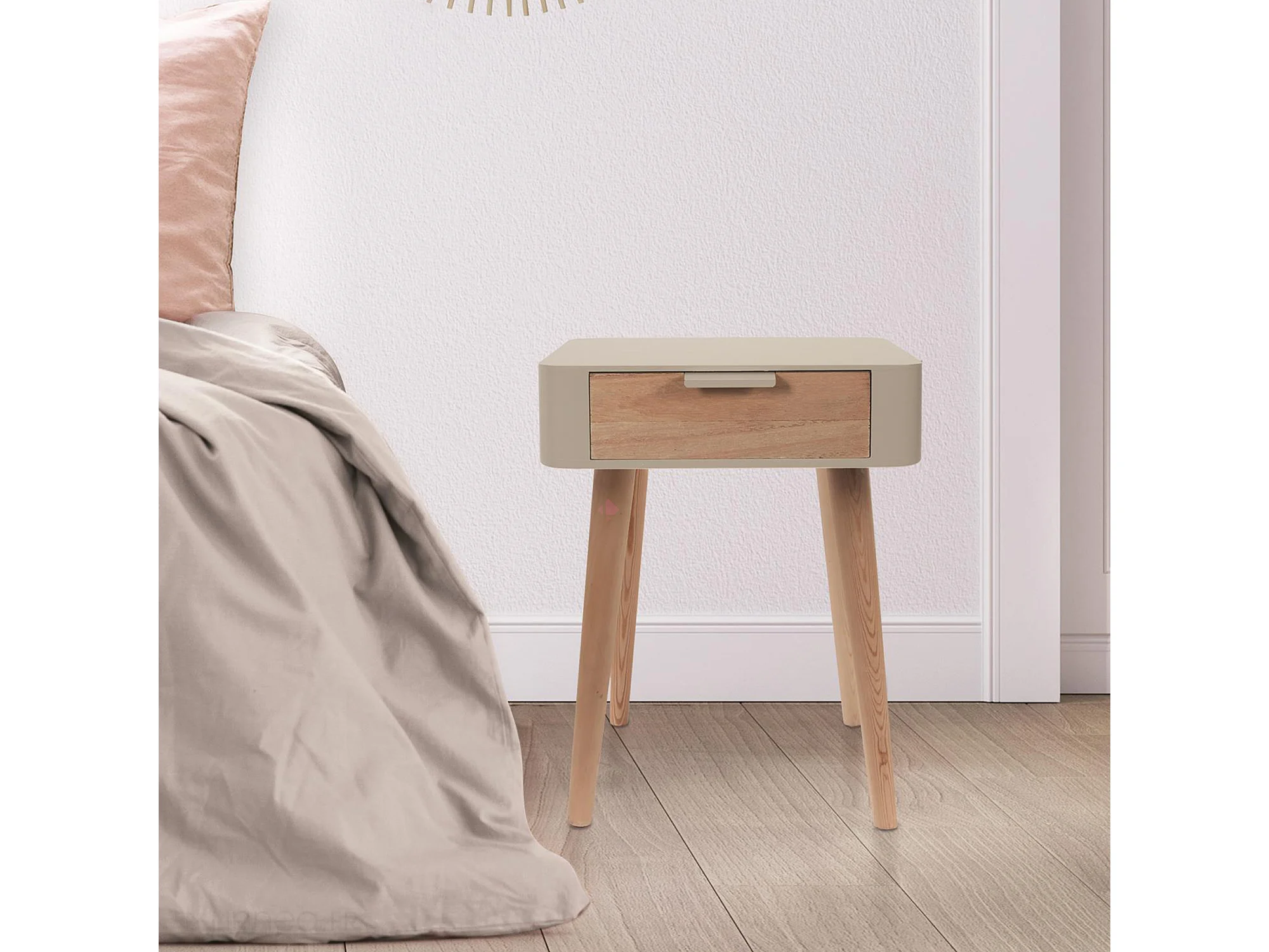 Table de chevet 1 tiroir en bois collection SHIREL taupe