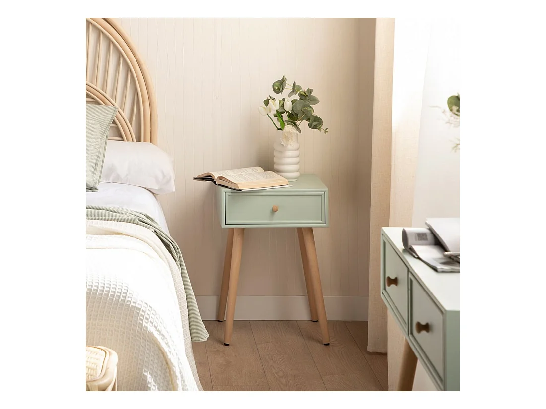 Table de chevet 1 tiroir en laqué menthe 40x61 cm-Tai