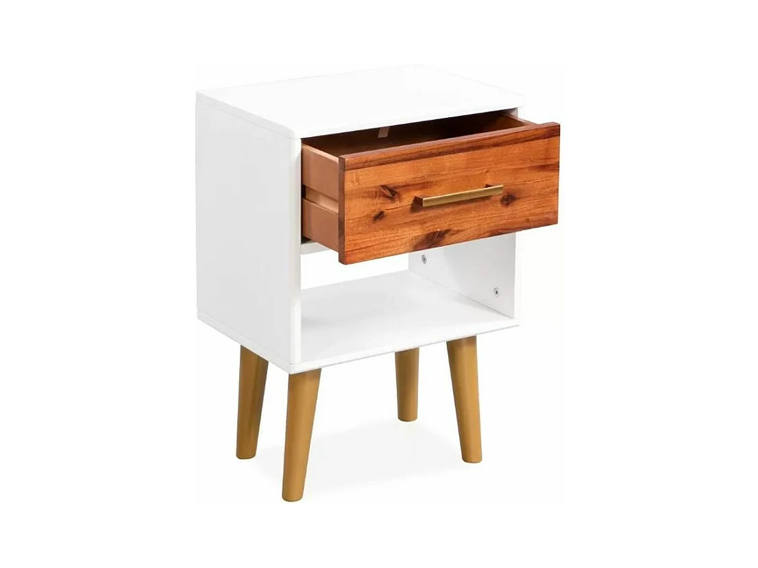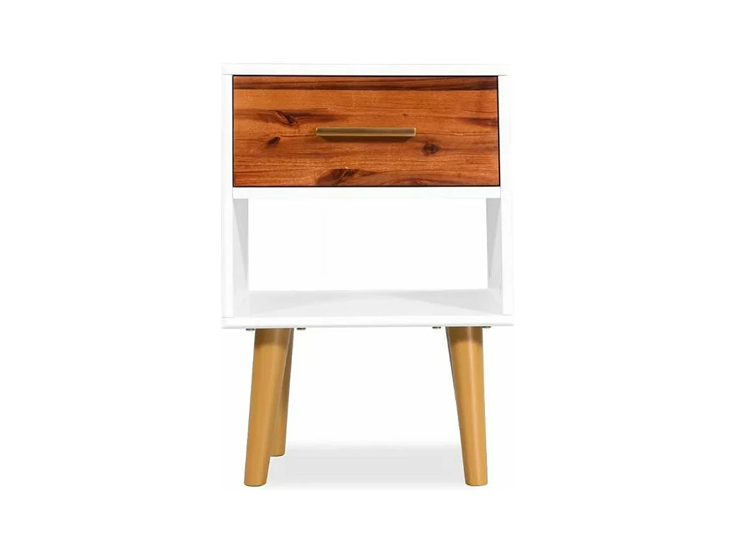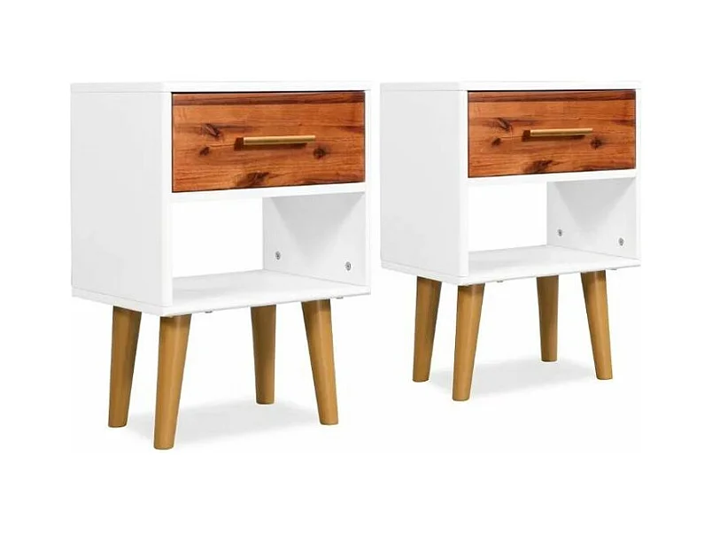 Table de chevet 1 tiroir et 1 niche acacia massif foncé et blanc Soken - Lot de 2