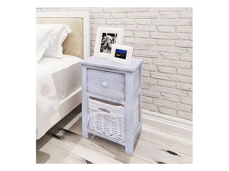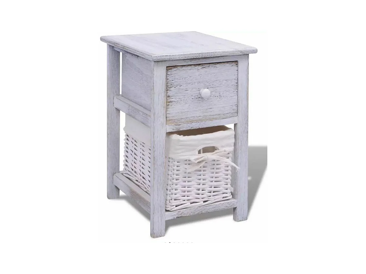 Table de chevet 1 tiroir et 1 panier paulownia massif clair Poupa