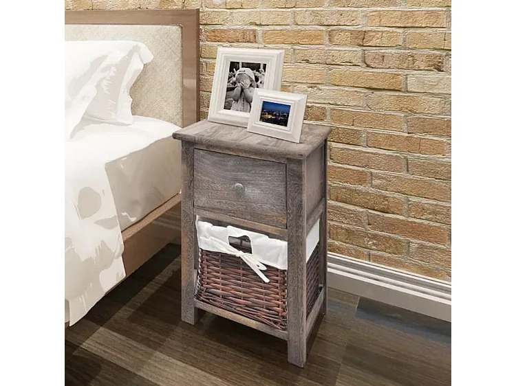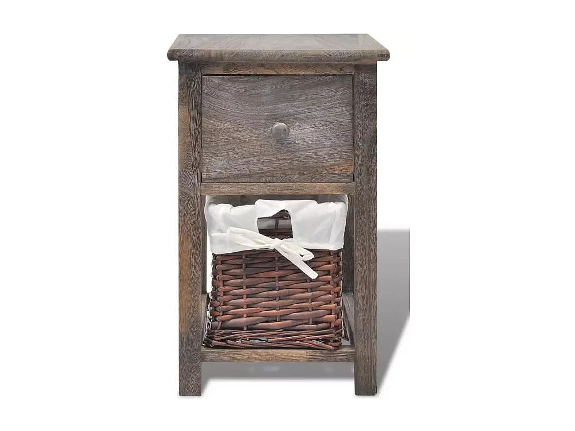 Table de chevet 1 tiroir et 1 panier paulownia massif foncé Poupa
