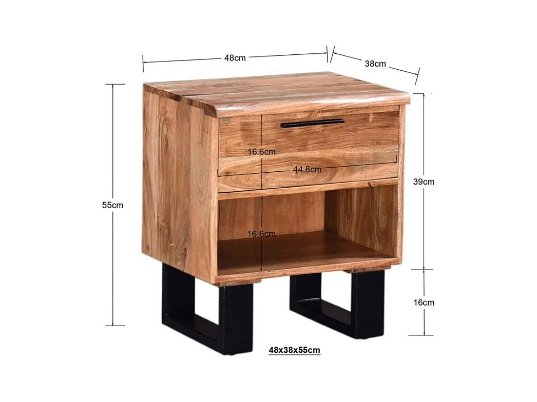 Table de Chevet 1 Tiroir "Nibula" 55cm Marron & Noir