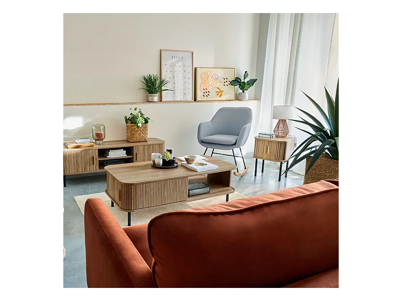 Table de chevet avec 1 tiroir - en panneaux de particules et rotin PE - Naturel