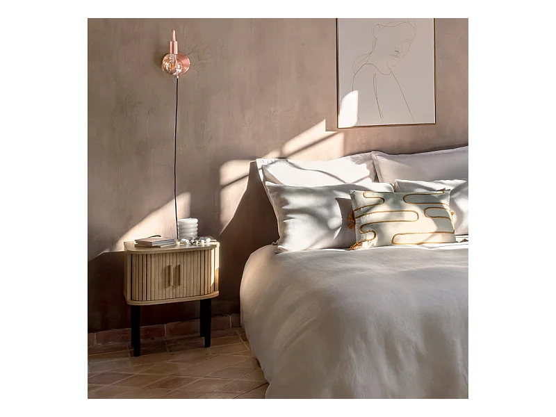 Table de Chevet Bella 1 Porte Couleur Chêne, Rotin Naturel