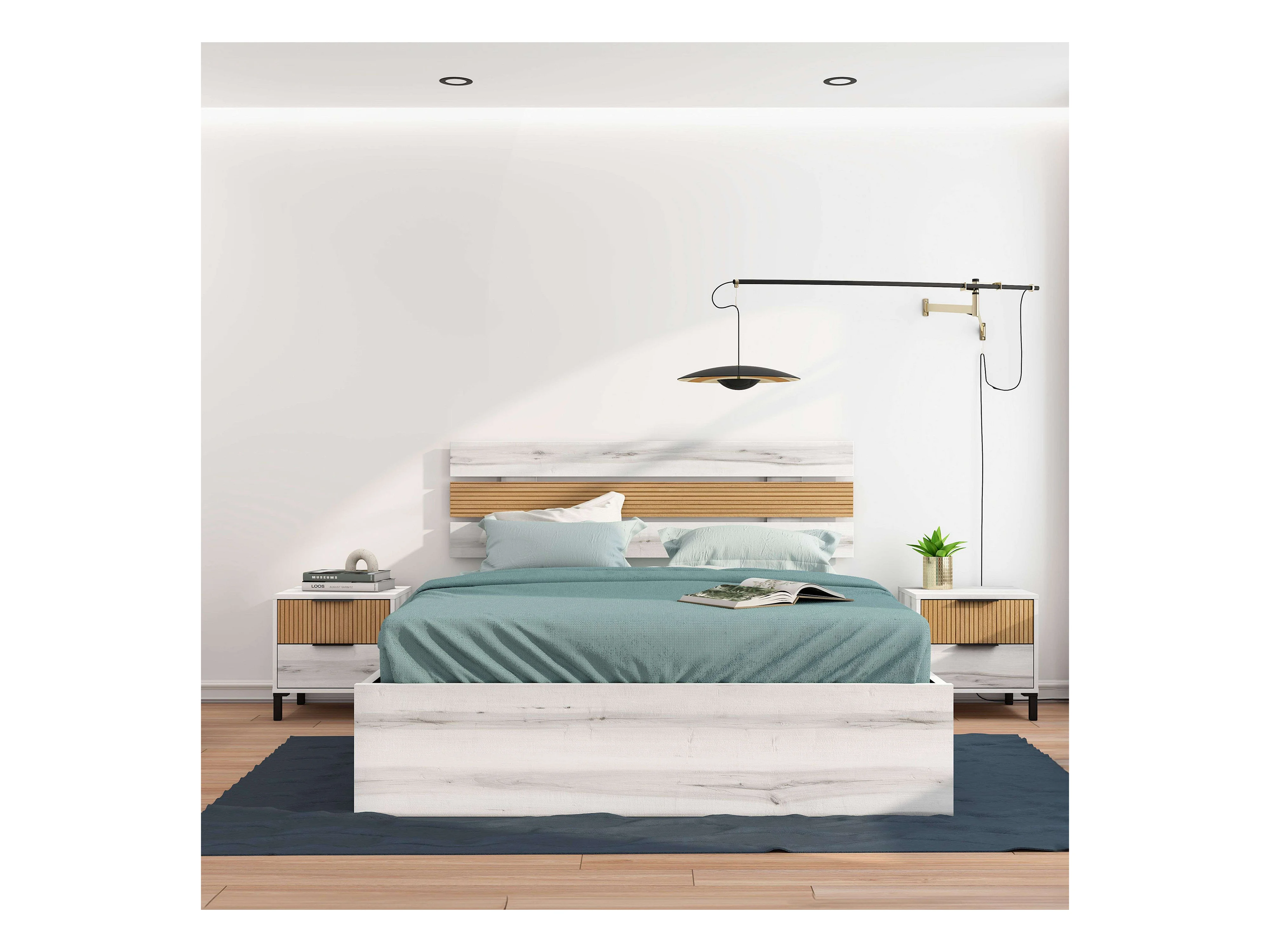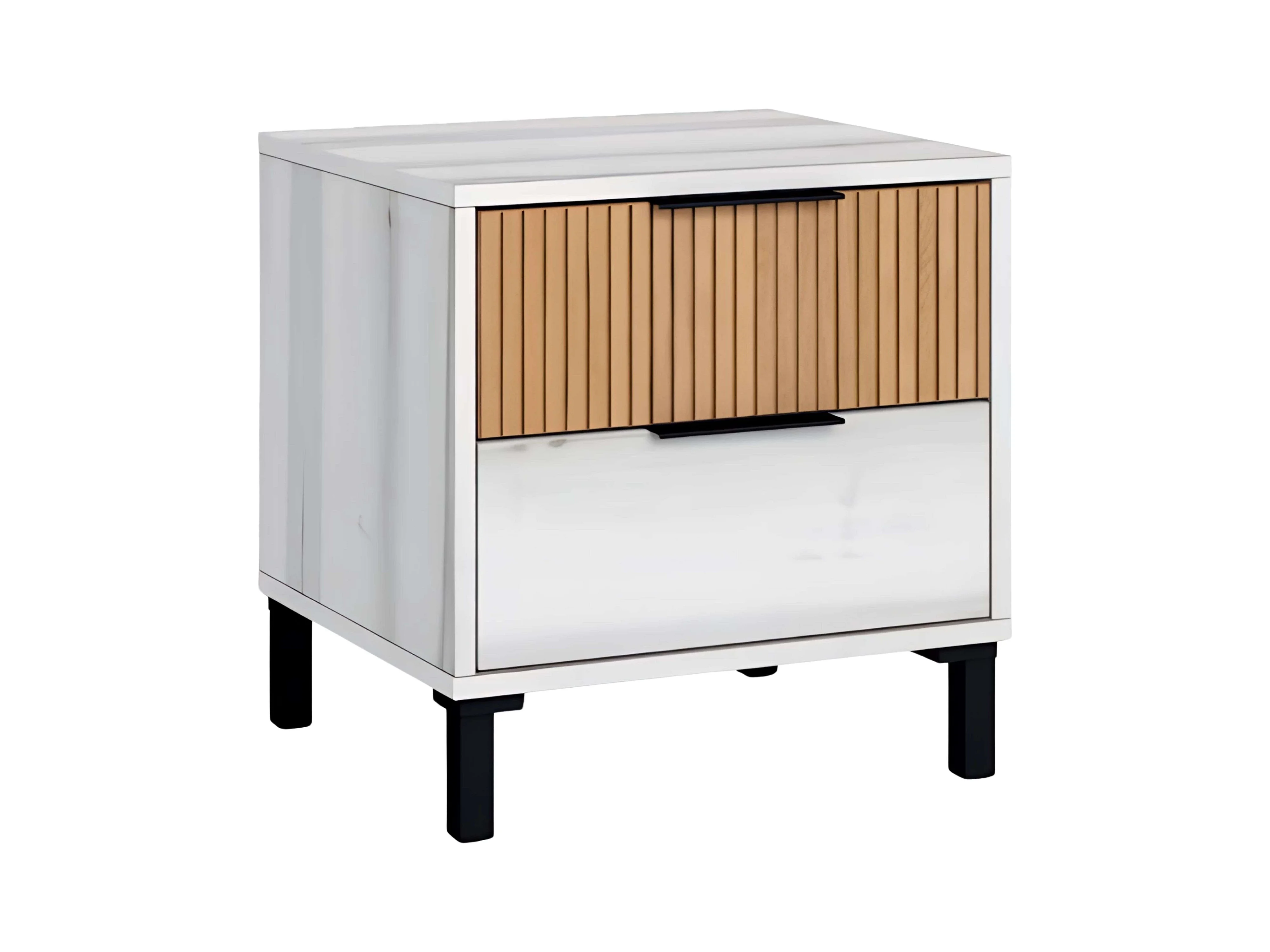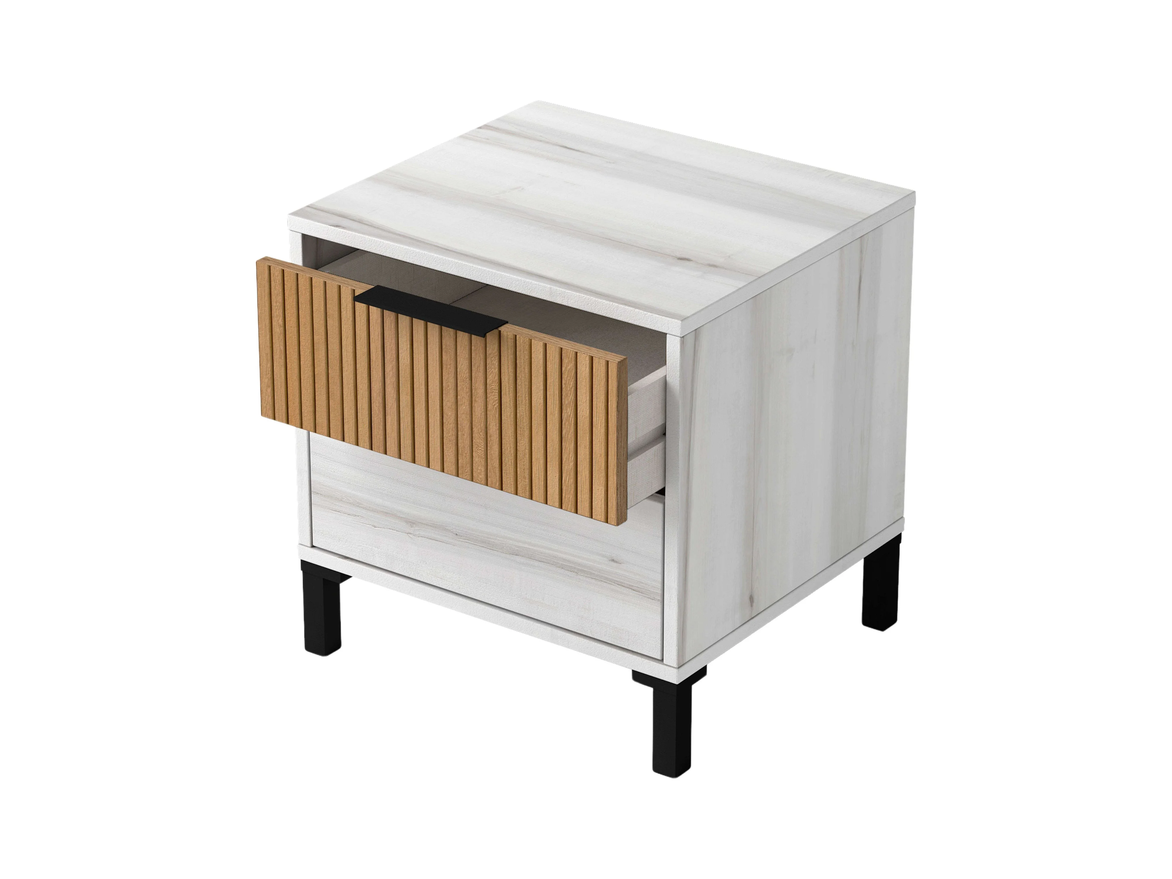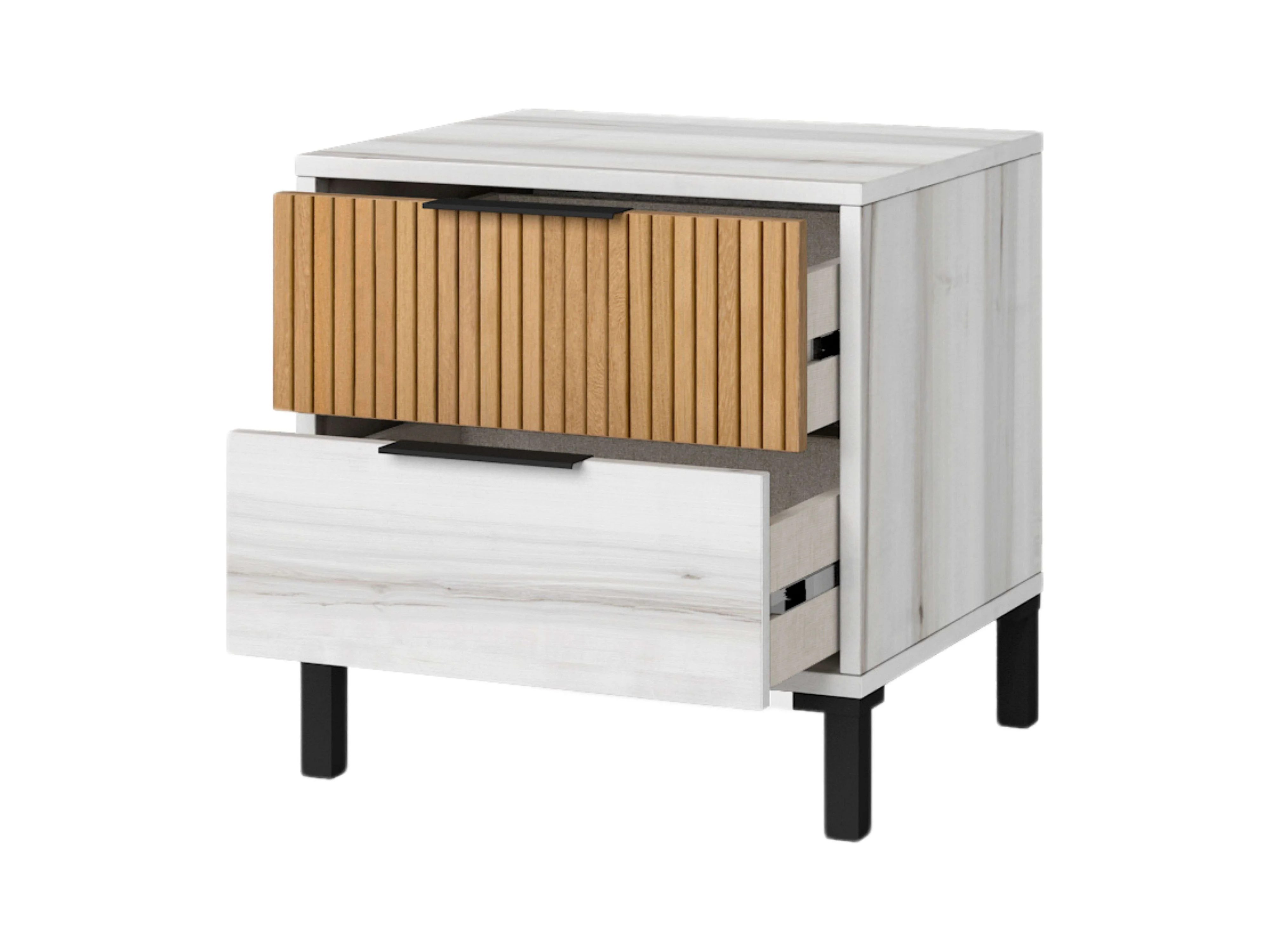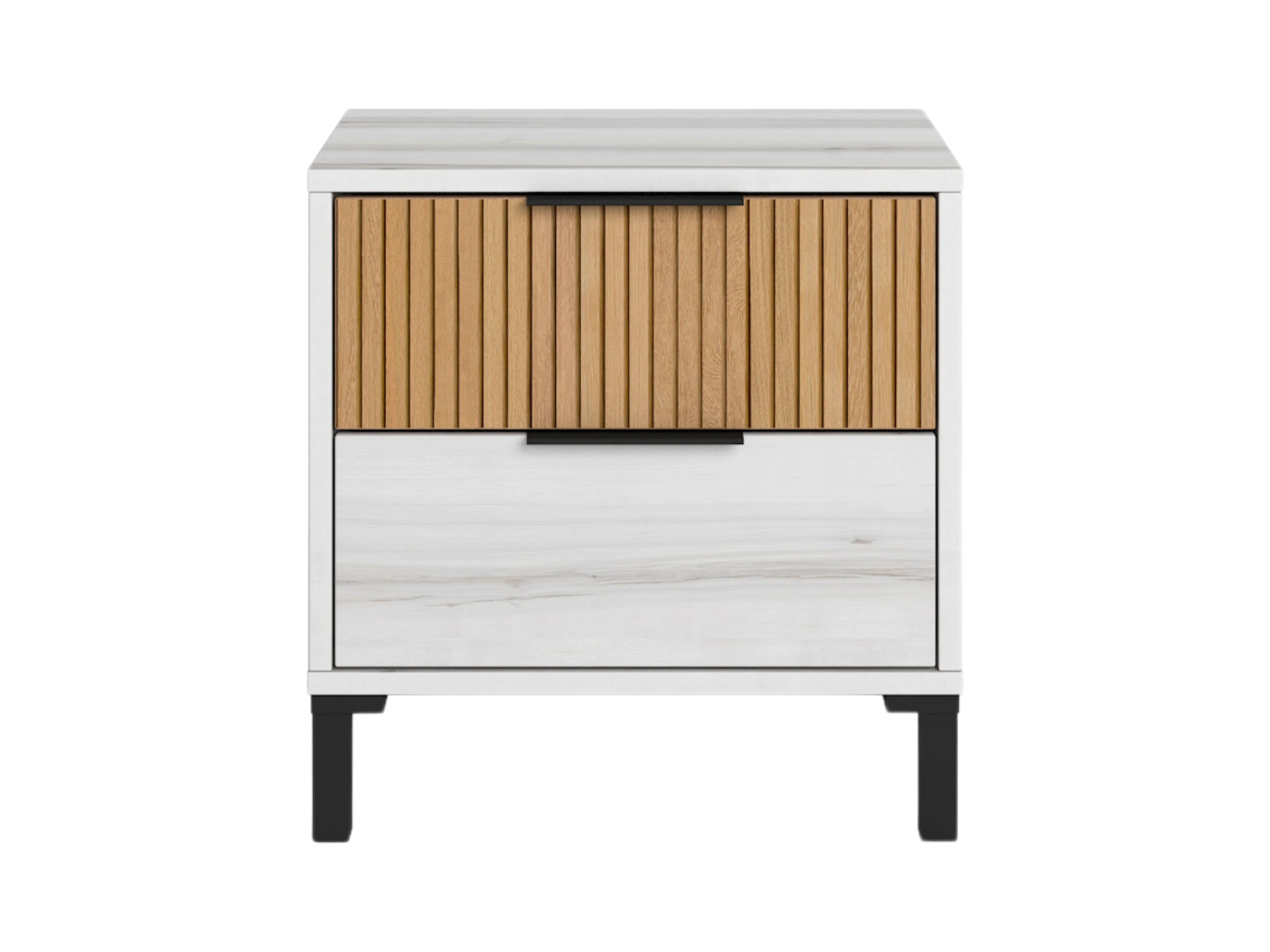 Table de chevet 2 tiroirs Arles, blanc, Albo, chêne rayé, 45 x 47 cm