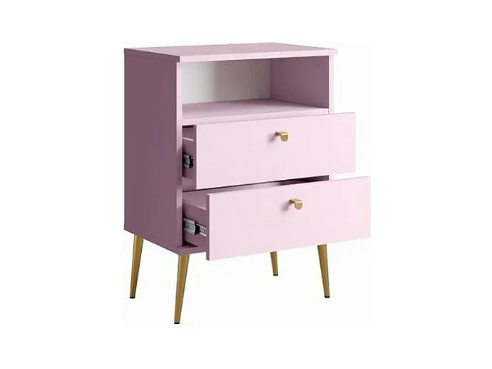 Table de Chevet 2 Tiroirs avec Niche - rose et pieds en métal doré - Collection Aurora