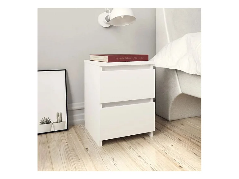 Table de chevet 2 tiroirs bois blanc Ricio - Lot de 2