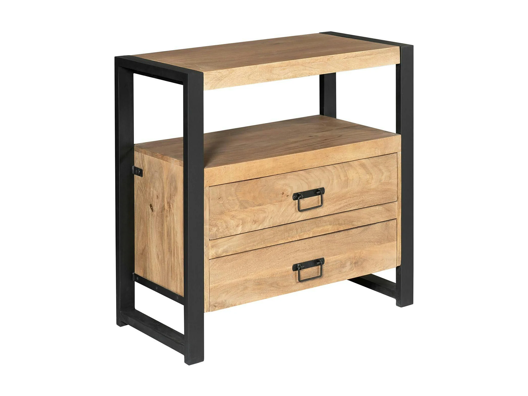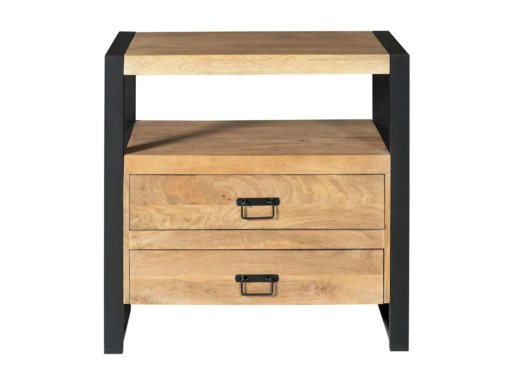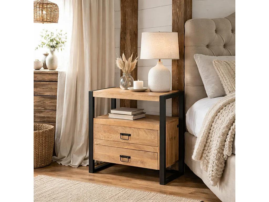 Table de chevet 2 tiroirs bois clair et métal noir MILORA
