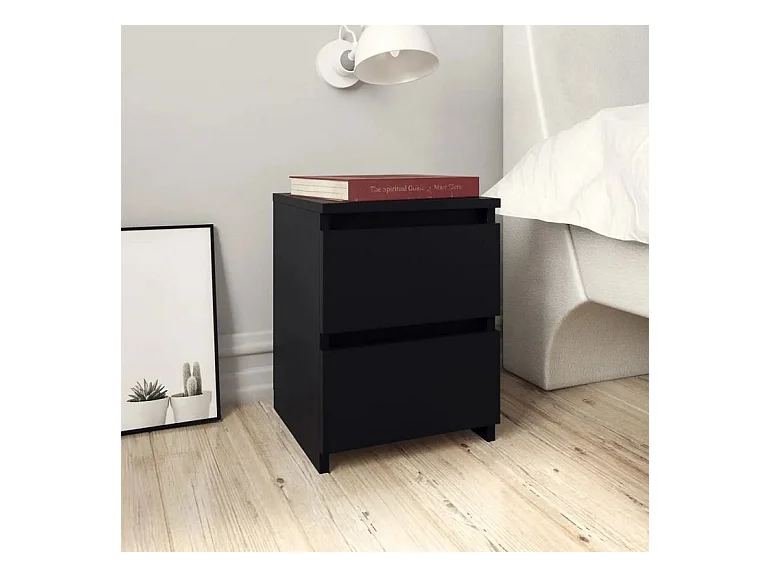Table de chevet 2 tiroirs bois noir Ricio