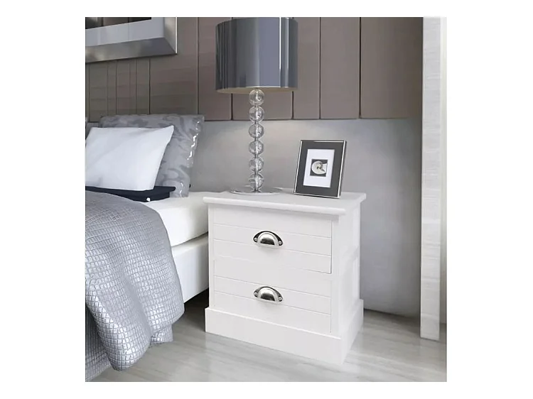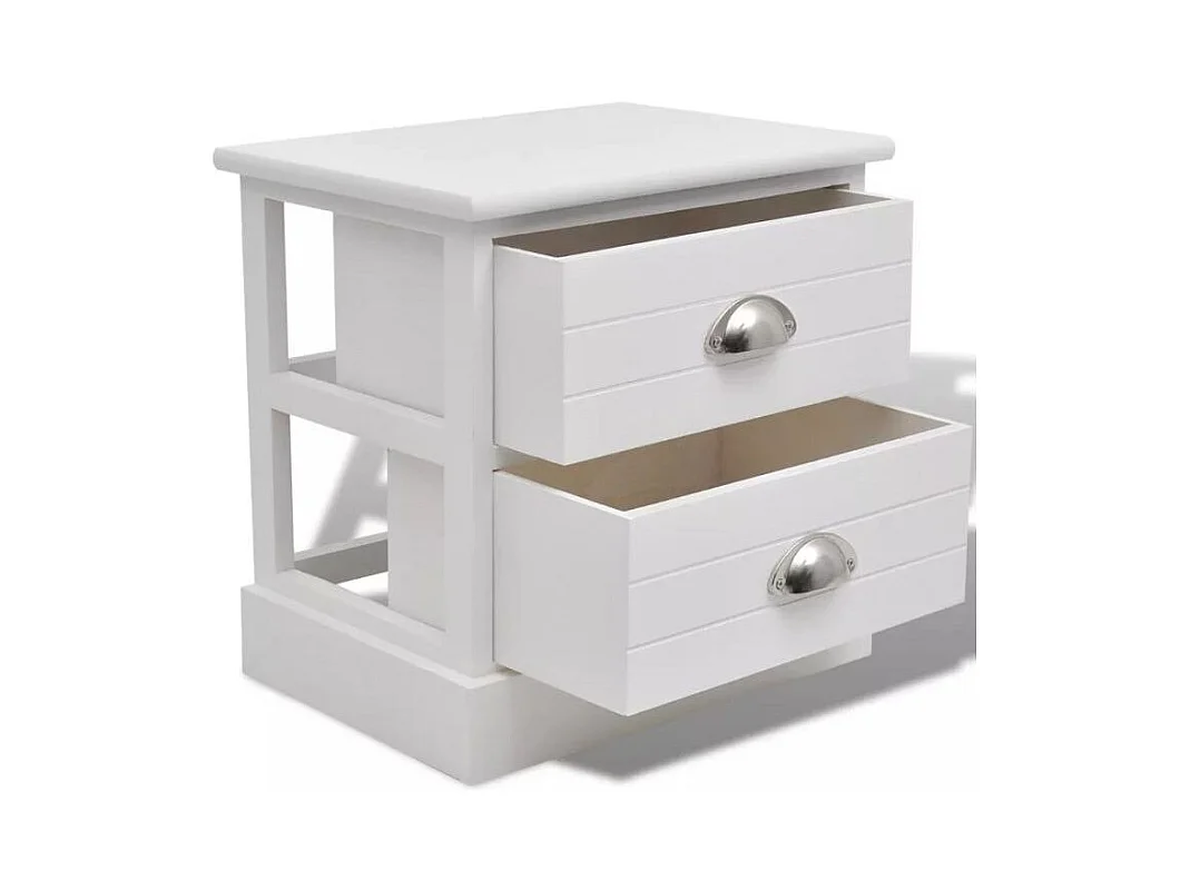 Table de chevet 2 tiroirs bois paulownia massif blanc Frenchy - Lot de 2