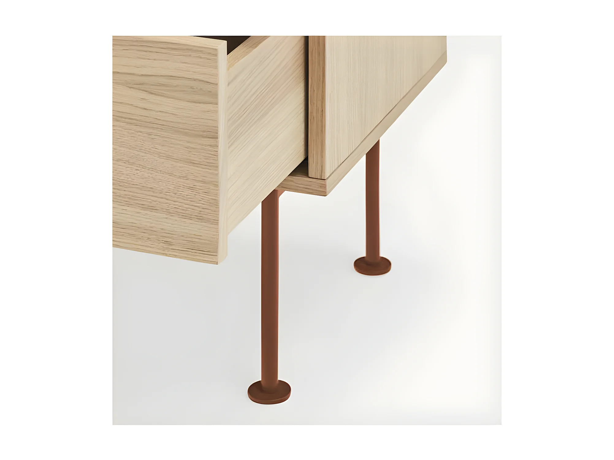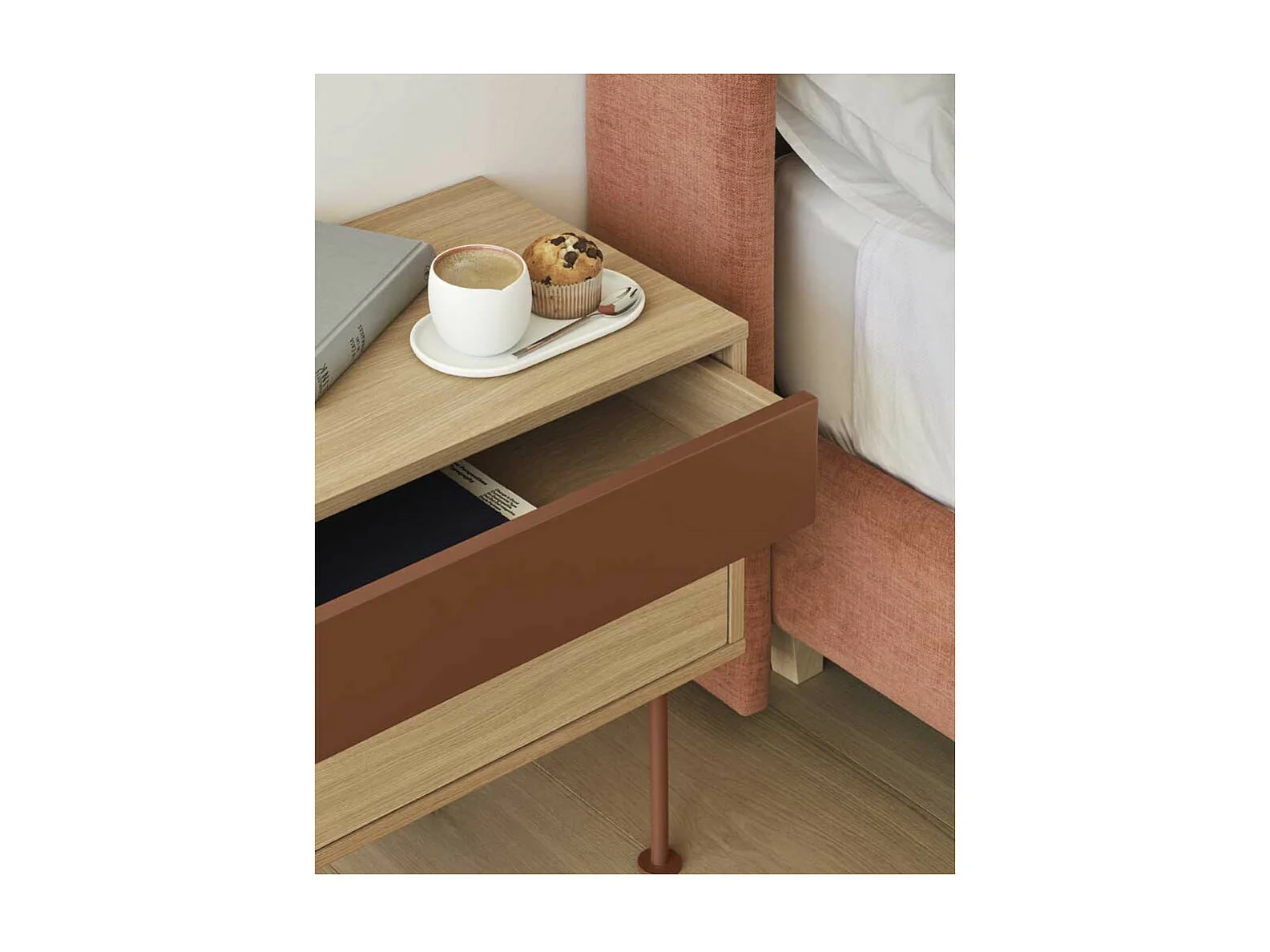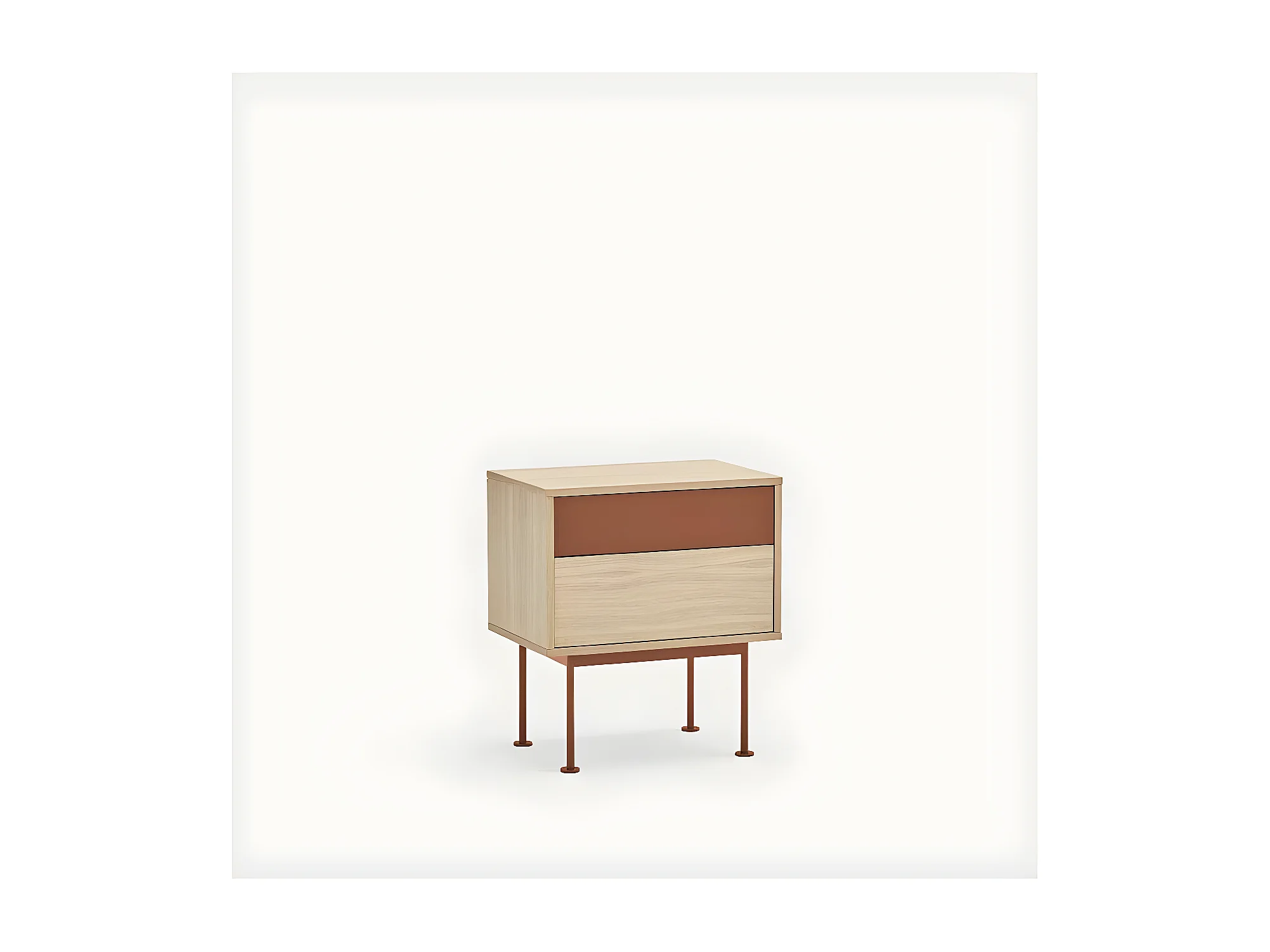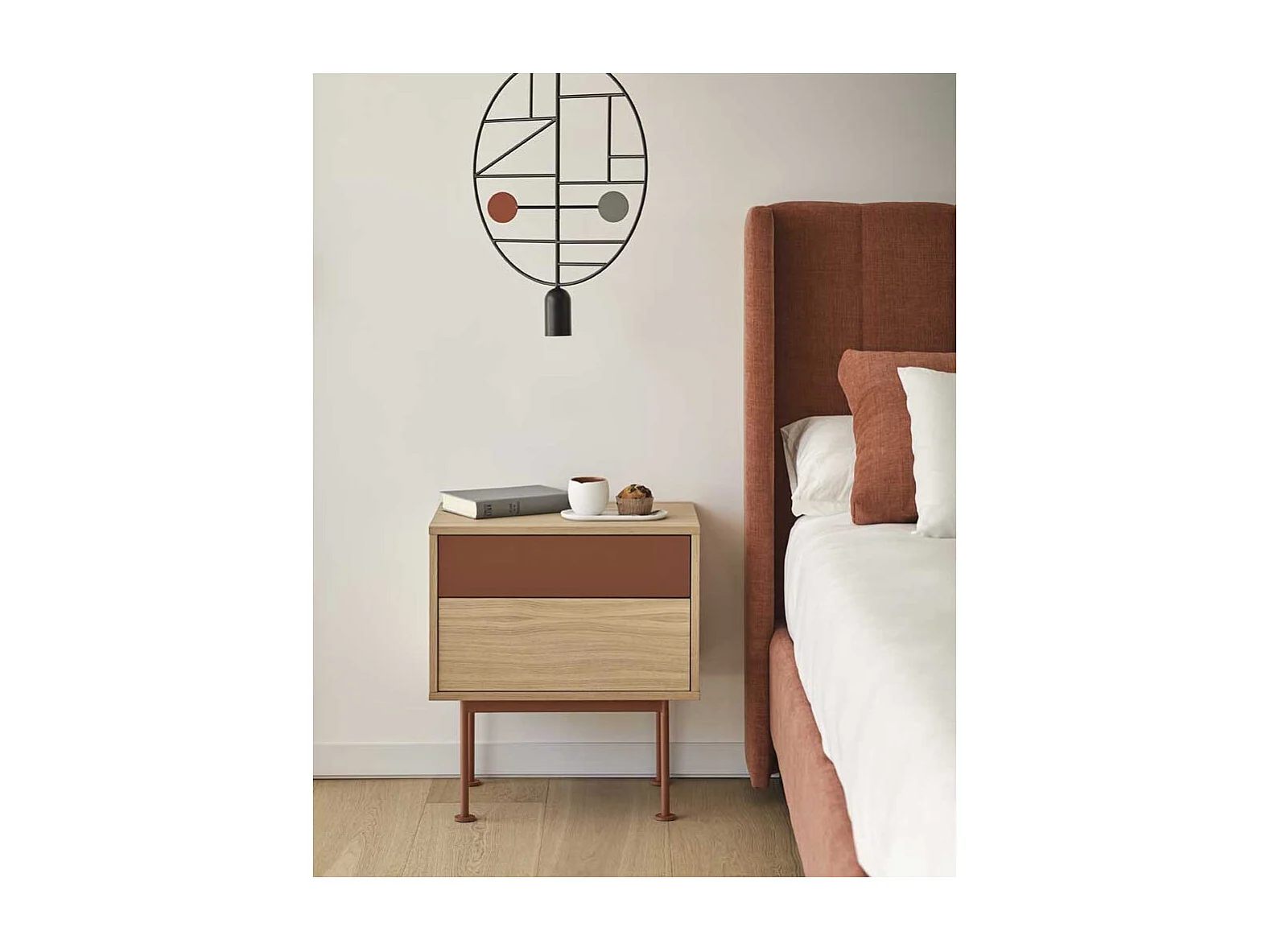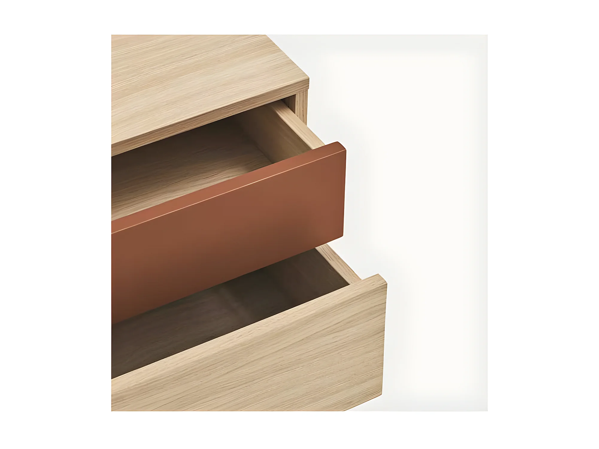 Table de chevet 2 tiroirs Chêne clair / Brique - TEULAT YOKO