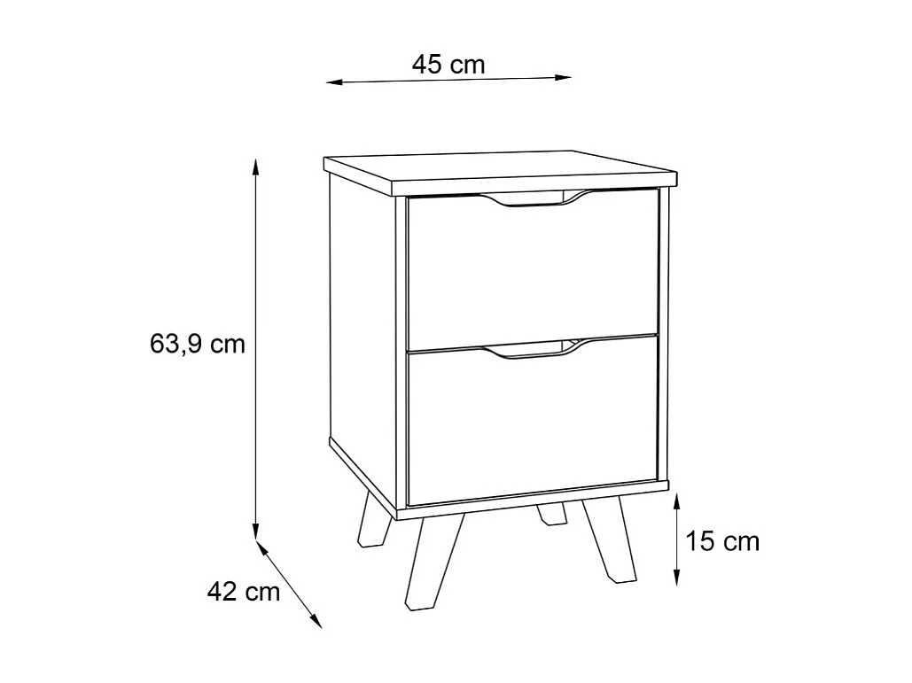 Table de chevet 2 tiroirs décor chêne et blanc pieds bois - ALBANE