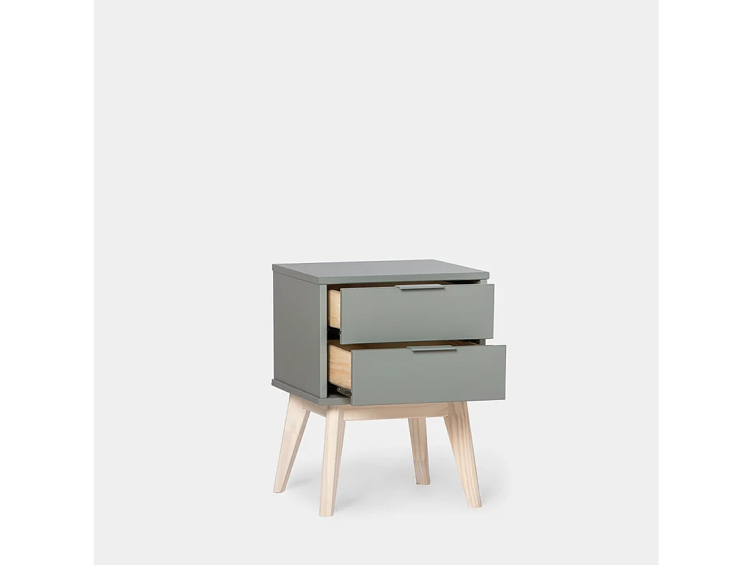 Table de chevet 2 tiroirs en laqué vert anthracite 40x53 cm-Troy