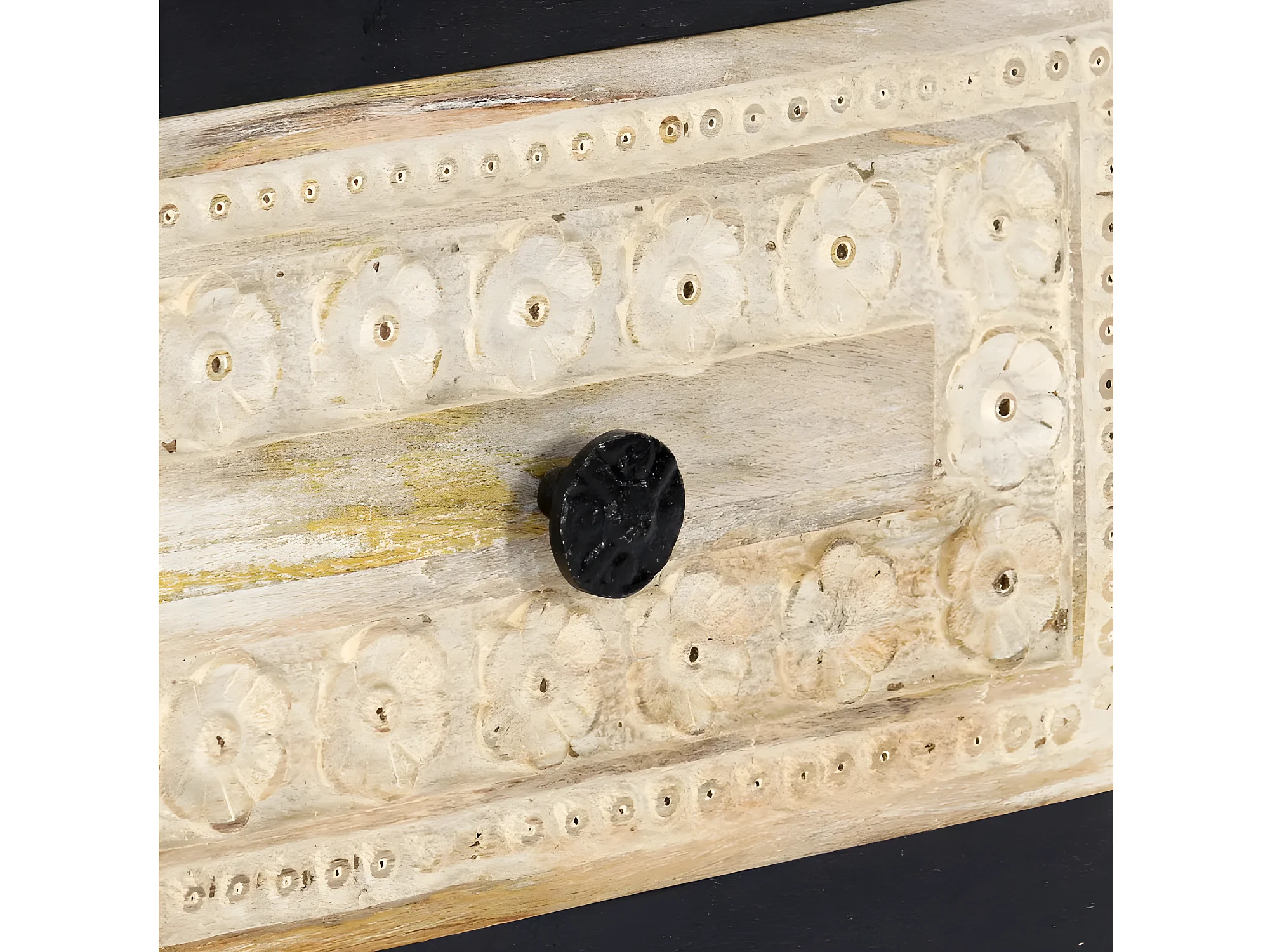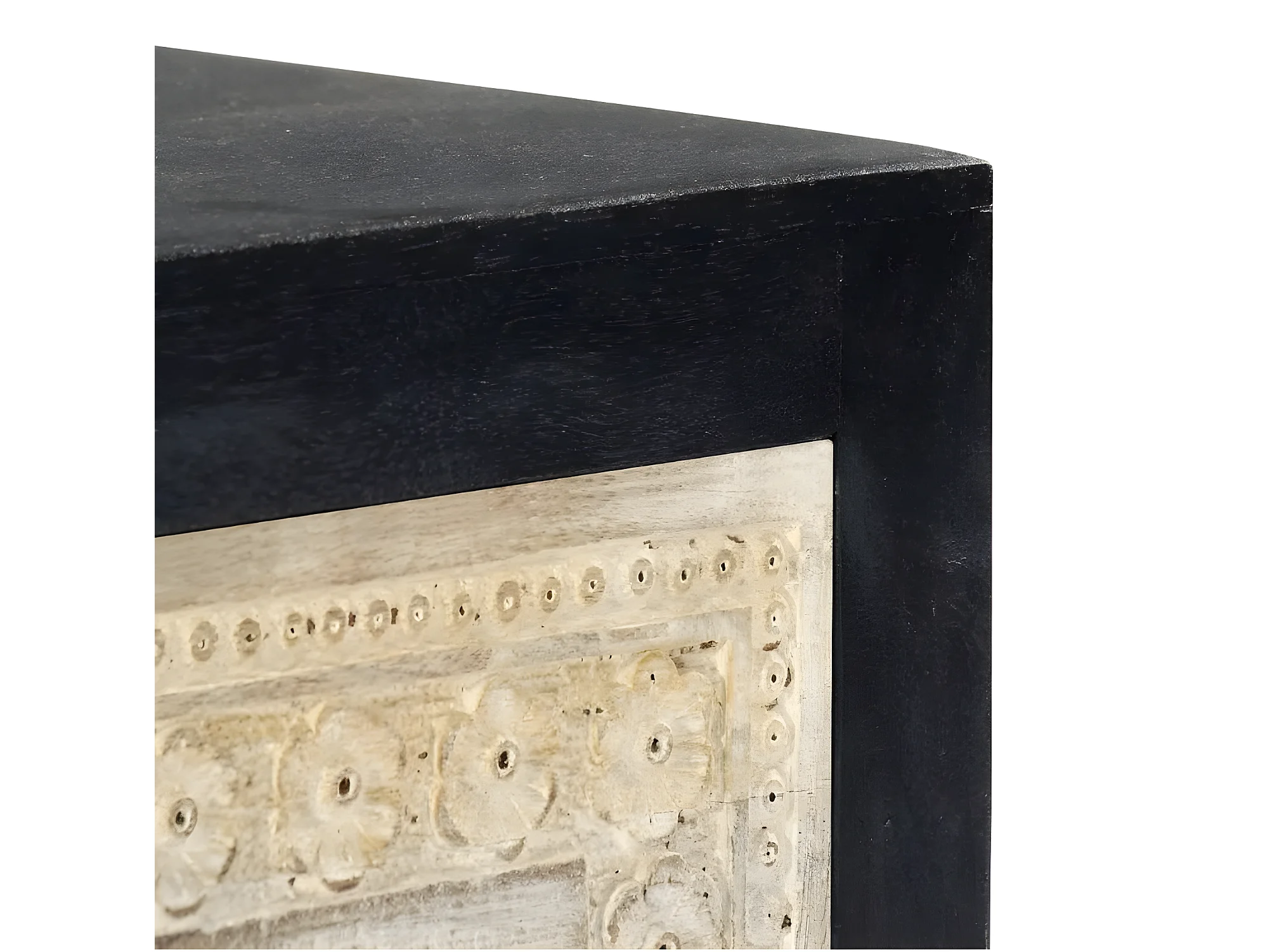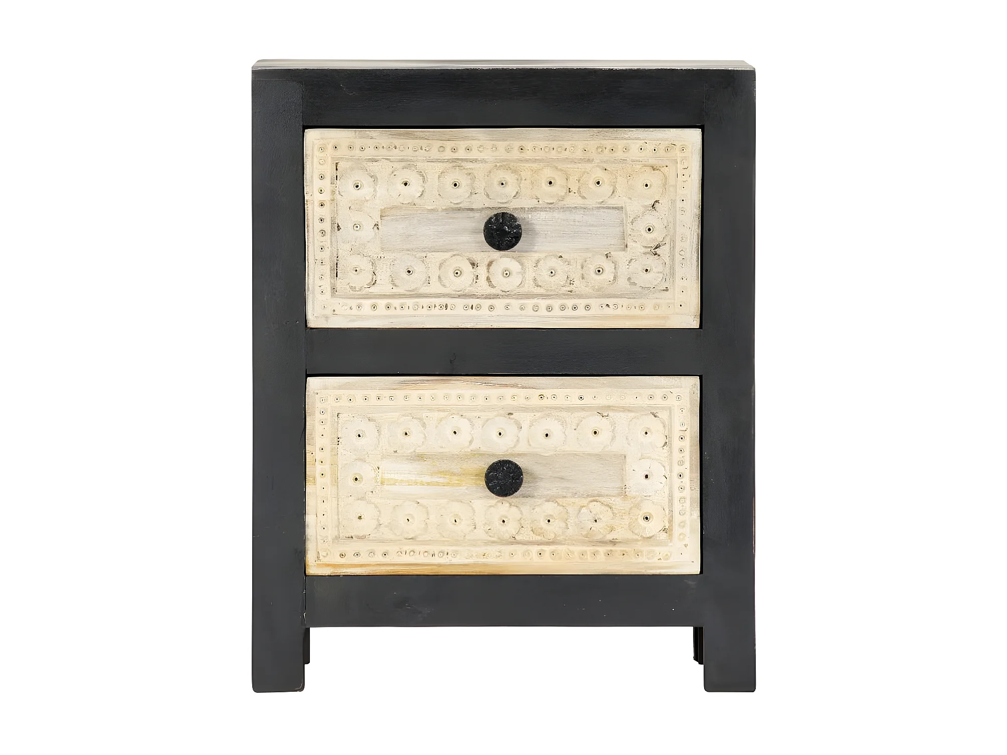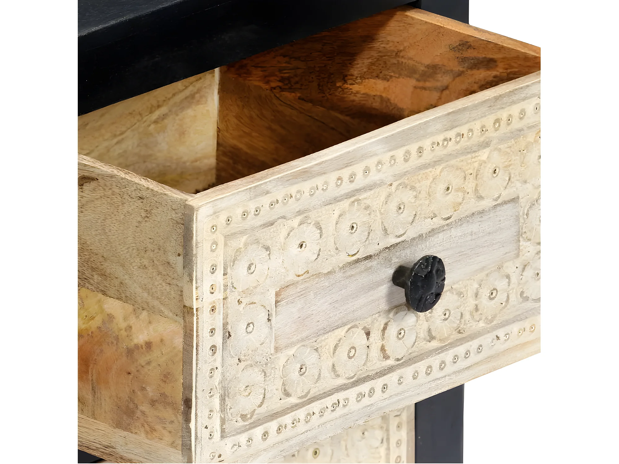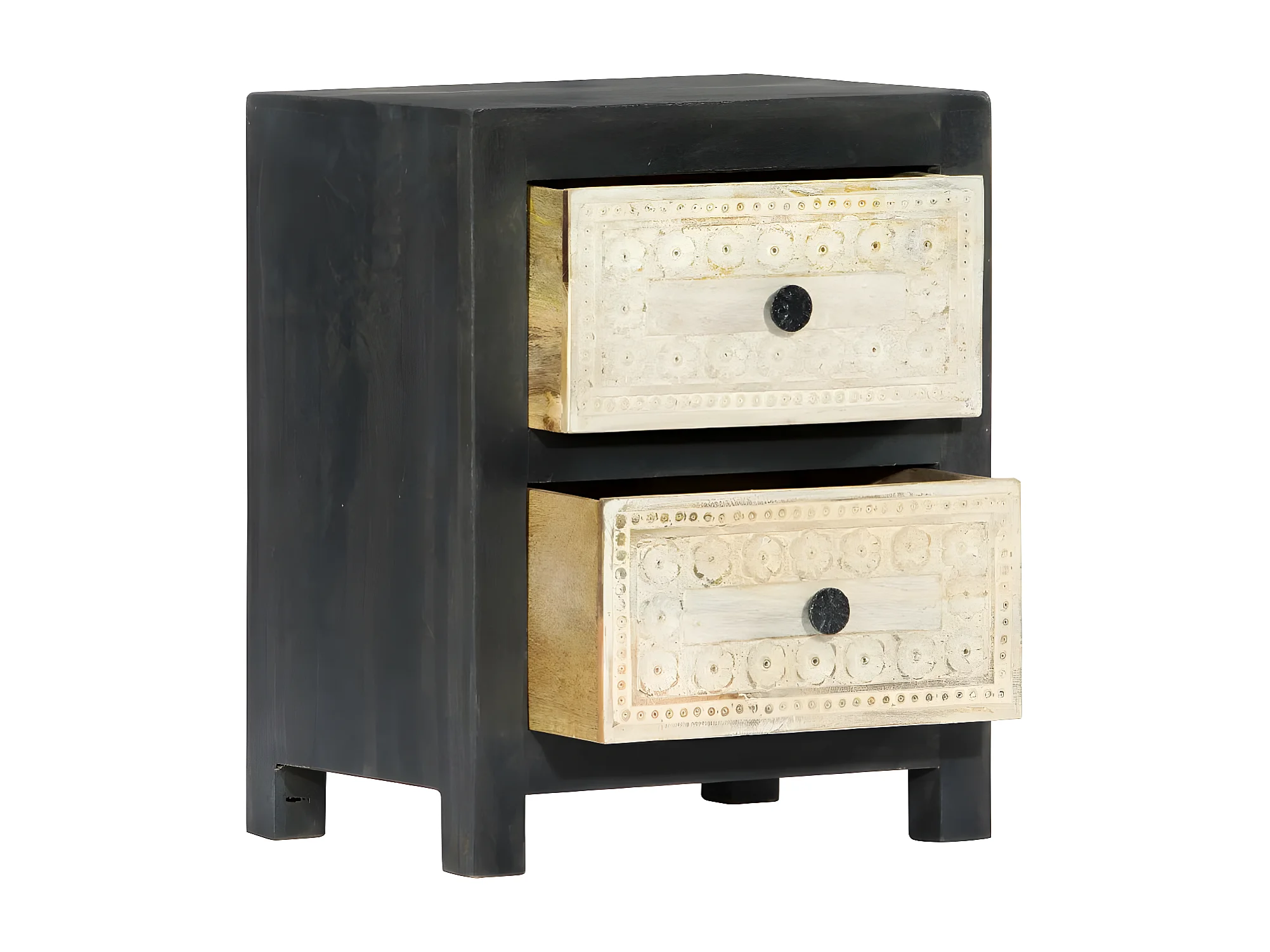 Table de chevet 2 tiroirs manguier massif clair et gris Misty