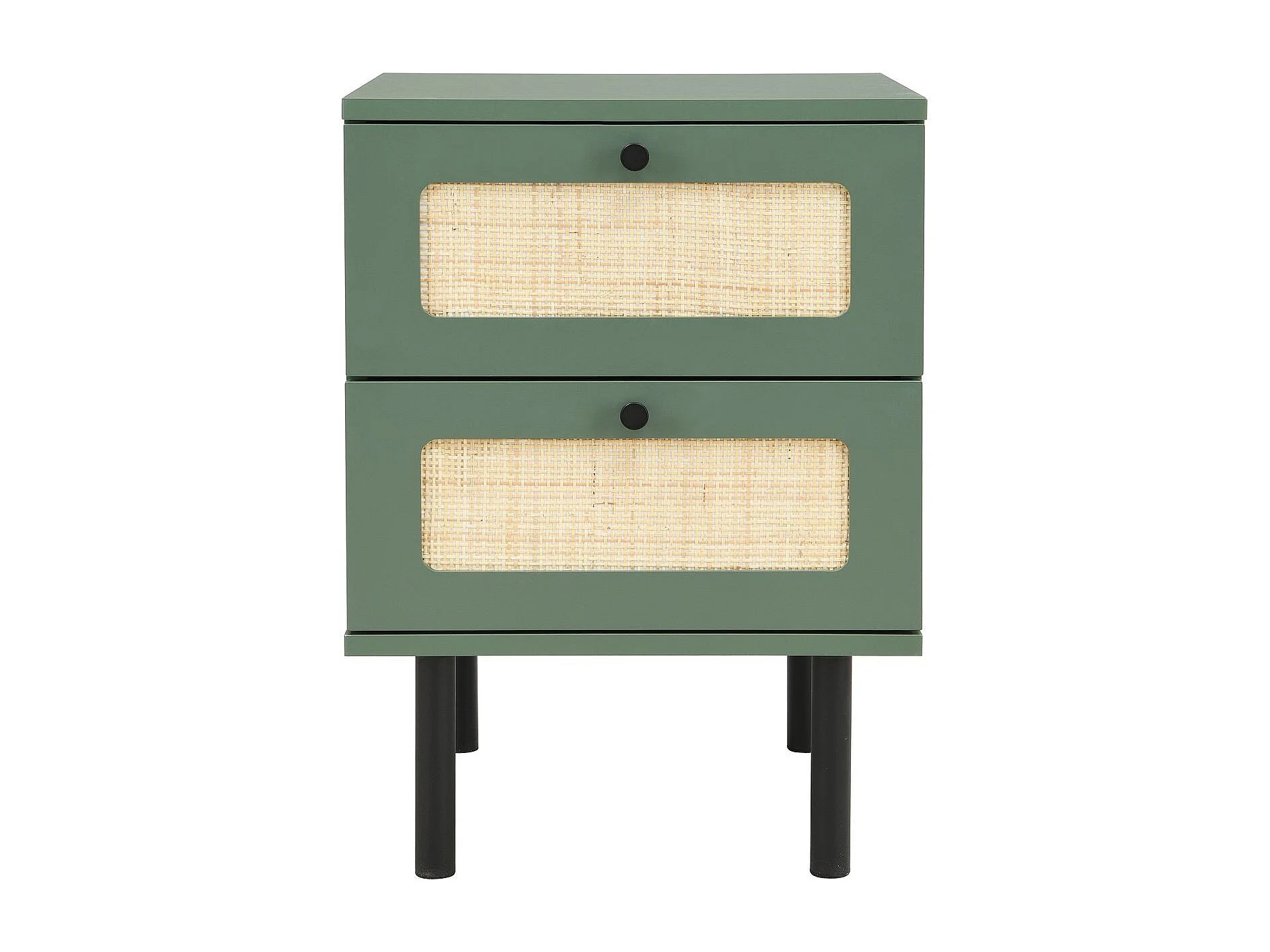 Table de chevet 2 tiroirs vert et cannage 40 cm - Luma